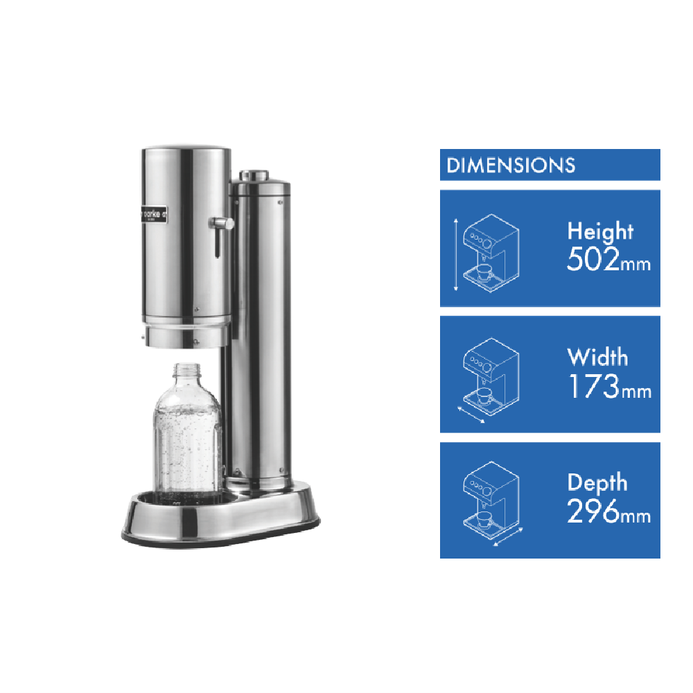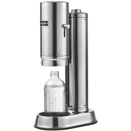 Enjoy an effortless fizz with the aarke Carbonator Pro Steel soda maker an elegant yet durable stainless steel appliance that makes it simple to create refreshing sparkling water at home. This one-handed device features aarke's unique Push-to-Lock mechanism for smooth hassle-free carbonation every time. Just add water to the included 800ml glass bottle insert a CO2 charger and push the bottle into place to produce up to 700ml of bubbly water in seconds. The sleek cordless Carbonator Pro adds sparkle to your kitchen with its modern steel finish. It includes one glass bottle and cleaning cloth for easy care. At just 502mm high and 173mm wide this compact soda maker saves space on your benchtop while delivering fresh carbonated water on demand. Give plain water some zing with the aarke Carbonator Pro Steel.