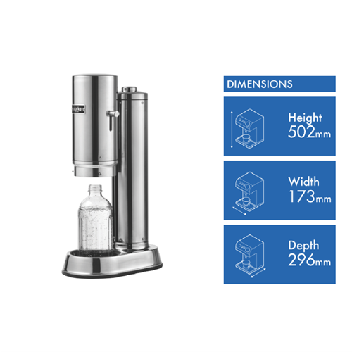 • Soda water maker with stainless steel and glass build