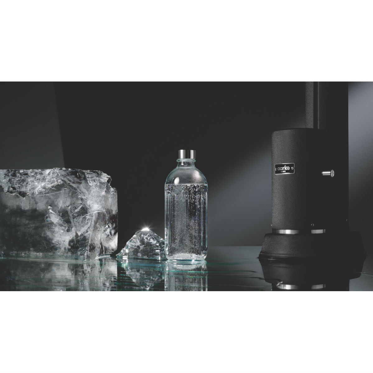 Transform your water into sparkling refreshment with the Aarke Glass Water Bottle Pro. This 800mL clear glass bottle with stainless steel and silicone cap enables you to carbonate water at home for a refreshing bubbly drink. The sleek modern design looks great in any kitchen while the dishwasher-safe construction ensures easy cleaning. Made exclusively for use with the Carbonator Pro it includes accessories like a PET bottle drip tray cover and Aarke cleaning cloth. Give your water a fizzy lift with this carbonating bottle from Aarke. Manufacturer Part Number: AK-A1074