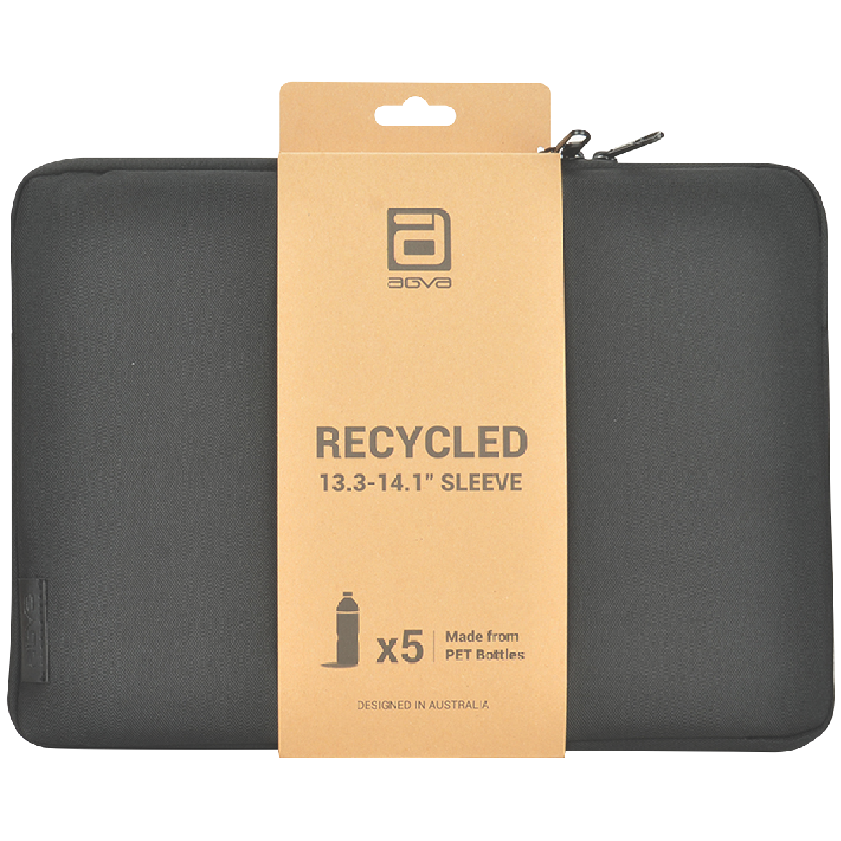 This sleek AGVA Recycled 13.1 Laptop Sleeve provides a protective and eco-friendly way to transport your laptop in style. Crafted from an estimated 5 recycled plastic bottles this sleeve makes sustainability look good. The padded interior compartment keeps your 14.1 laptop safe from bumps and scratches while the slim lightweight exterior easily slides into bags and backpacks. With its durable one year warranty and versatile black color this laptop sleeve is the perfect eco-conscious accessory for commuters and travelers. The manufacturer's part number for this product is AREC1. Check out this sustainable sleeve to keep your tech safe on the go.
