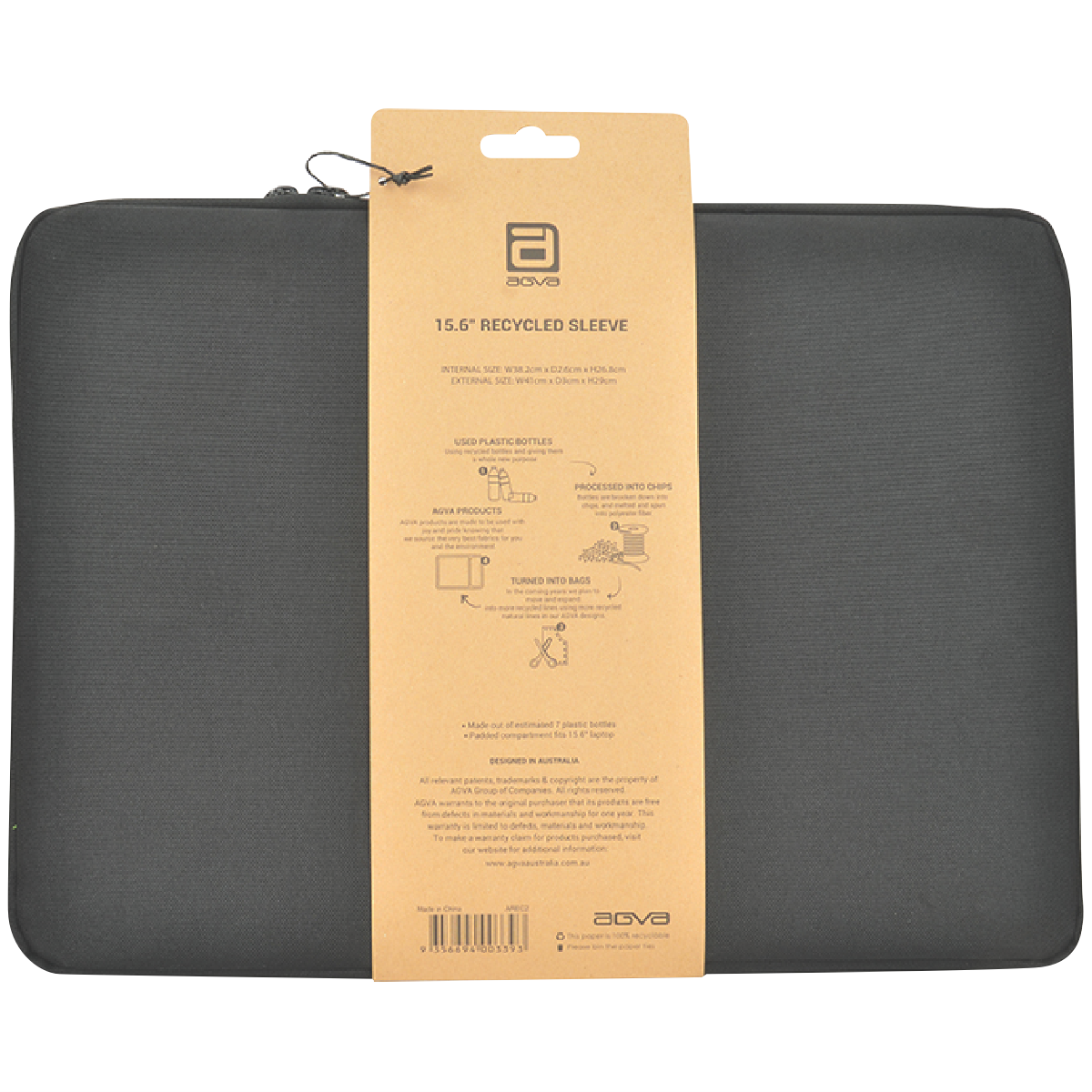 Transport your laptop in style with the AGVA Recycled 15.6 Laptop Sleeve. This durable polyester sleeve comes in a sleek black design and is compatible with 15.6 laptops. The padded compartment keeps your device protected while the adjustable shoulder strap and carry handle provide convenient portability. With a handy mesh pocket for small accessories zip closure for security and lightweight 550g construction this laptop sleeve simplifies your daily commute. Additional features like the 1 year manufacturer's warranty give you peace of mind. For a sustainable and stylish way to carry your 15.6 laptop choose the AGVA Recycled Laptop Sleeve. The manufacturer's part number for this product is AREC2. Check out this laptop sleeve to keep your tech safe on the go.
