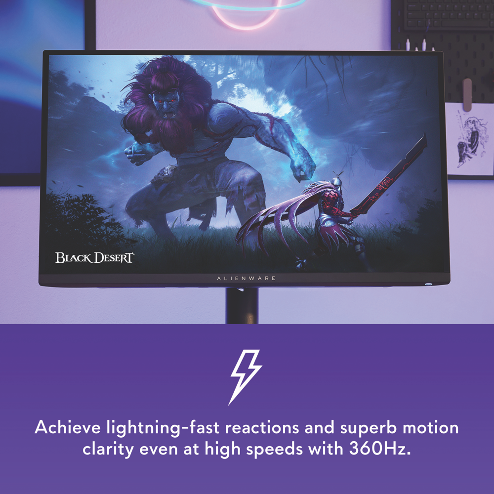 Take your gaming to the next level with this Alienware 26.7 OLED monitor. The lightning-fast 0.03ms response time means you'll see every frame clearly with no blur while the impressive 360Hz refresh rate keeps fast-paced action smooth. The 2560 x 1440 resolution delivers sharp visuals on the vibrant OLED display which reaches up to 1000 nits brightness and offers an incredible 1.5 million:1 contrast ratio for deep blacks and bright highlights. Fully adjustable with height tilt swivel and pivot options this monitor adapts to your perfect viewing position. Connectivity is sorted with HDMI 2.1 DisplayPort and USB-C options plus it supports AMD FreeSync Premium Pro for tear-free gaming. The AW2725DF comes with a 3-year warranty for peace of mind.