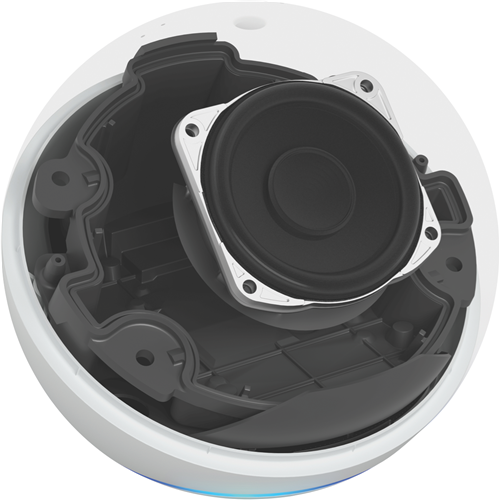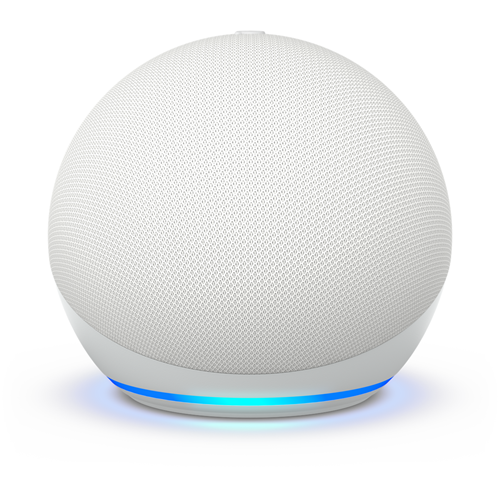 The Echo Dot (Gen 5) in Glacier White brings Alexa to your home giving you hands-free control of your smart home and entertainment. This latest smart speaker features a 44 mm front-firing speaker for crisp vocals and balanced bass delivering lossless high definition audio that fills any room. With Alexa built-in just ask to play music set alarms get the news check the weather control compatible smart home devices and more. The LED display shows the time alarms and volume. Connect to Wi-Fi 5 and Bluetooth to stream music. The temperature sensor allows Alexa to automatically adjust the speaker's temperature-sensitive components to prevent overheating. This compact yet powerful smart speaker measures just 89mm high and 100mm wide blending into any space. Setup is simple; just plug in and ask Alexa to get started. Start building your smart home today with the Echo Dot (Gen 5) in Glacier White. The manufacturer's part number for this product is B09B8VHBH1. Discover how Alexa can make your life easier.