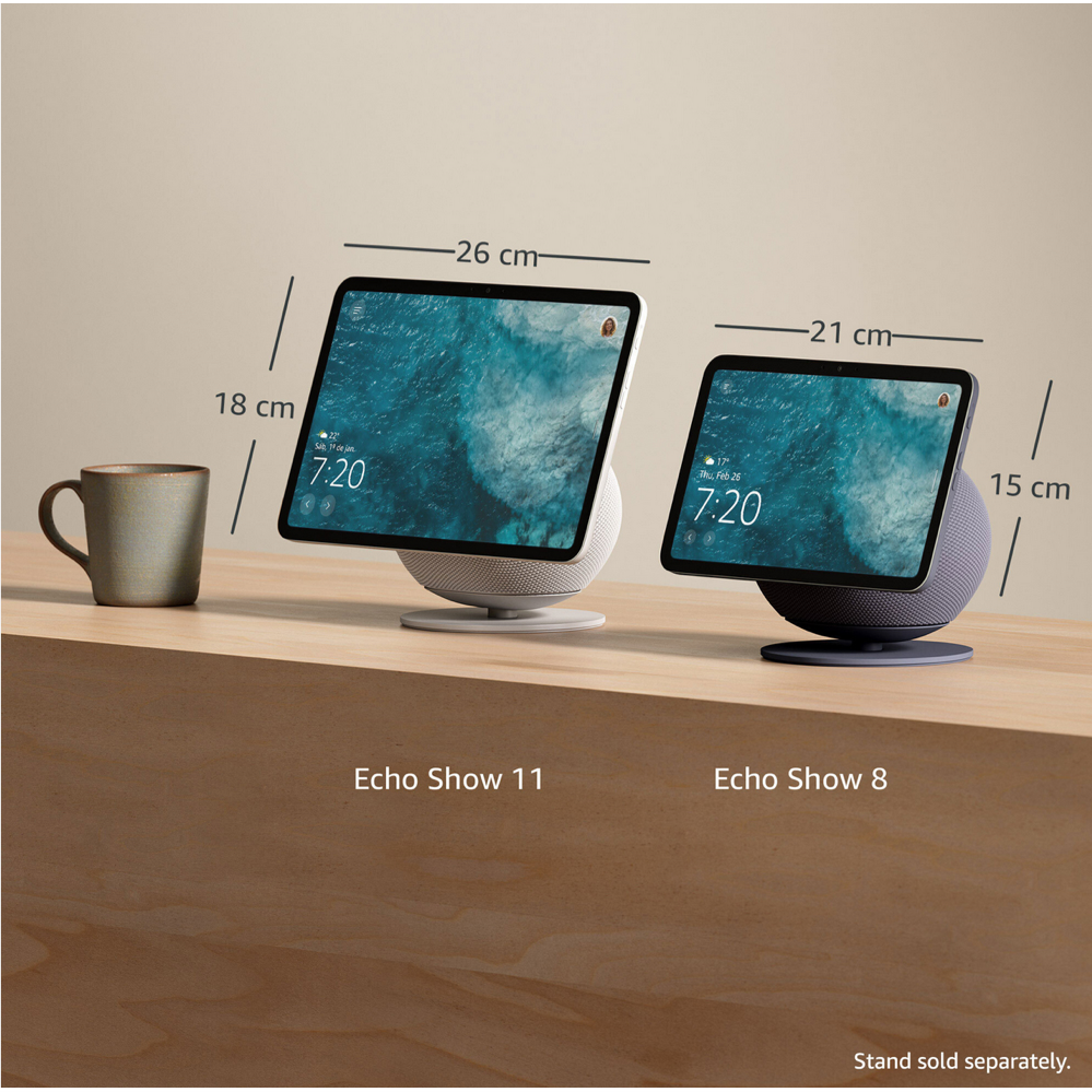 The Echo Show 8 in Glacier White brings Alexa to life with a vibrant 8.7-inch HD touchscreen display. Control your smart home effortlessly through voice commands or the touchscreen while enjoying rich audio from its powerful speaker system featuring one 2.8 woofer and two full-range drivers. Stay connected using Wi-Fi 6E and Bluetooth capabilities which work seamlessly with both Android and iOS devices. The built-in sensors including temperature sensing and motion detection make this smart display even more intuitive. Plus it's compatible with Matter and Thread standards for broader smart home integration. Comes with a power adaptor and quick start guide backed by a 1-year warranty. B0DYBR8611.