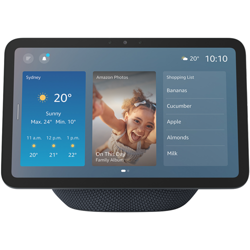 The Echo Show 8 brings Amazon Alexa to life with its vibrant 8.7-inch HD touchscreen display making it easy to control your smart home with just your voice. Its powerful audio system features a 2.8 woofer and two full-range drivers that fill your room with rich sound while you're checking the weather or streaming your favourite shows. Thanks to Wi-Fi 6E connectivity and Bluetooth capability you'll enjoy faster more reliable connections to all your compatible devices. The built-in sensors including temperature sensing and motion detection help Alexa respond more intelligently to your environment. Works with Matter and Thread compatible devices for seamless smart home integration. Comes with a 1-year manufacturer's warranty. B0DYBWTR33.