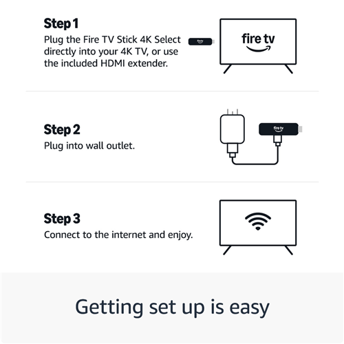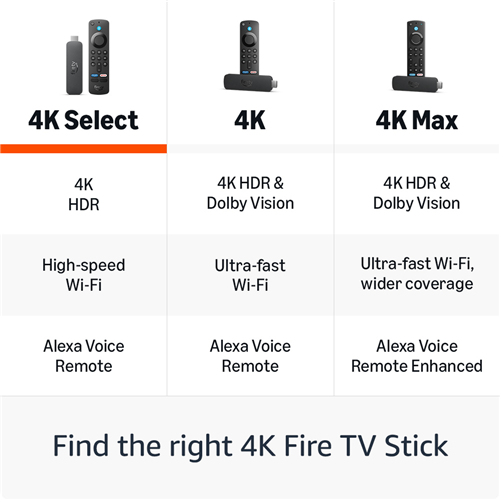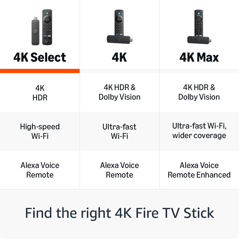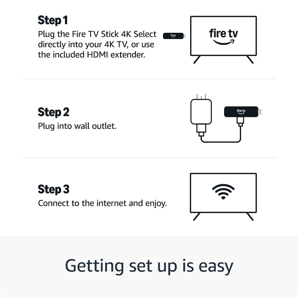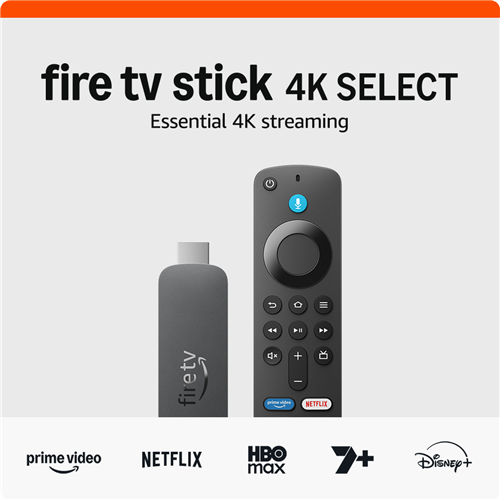 Bring 4K streaming to your TV with the Fire TV Stick 4K Select. This compact streaming device delivers stunning 4K Ultra HD resolution with HDR10+ support making your favorite shows and movies look incredibly detailed. The quad-core 1.7 GHz processor ensures smooth performance while you navigate content using the included Alexa Voice Remote. Simply connect to your Wi-Fi 5 network and plug into your TV's HDMI port to get started. Enjoy 8GB of storage and HDMI pass-through of Dolby-encoded audio for an enhanced viewing experience. Comes with a 1-year warranty. Model B0CN41KMT5.