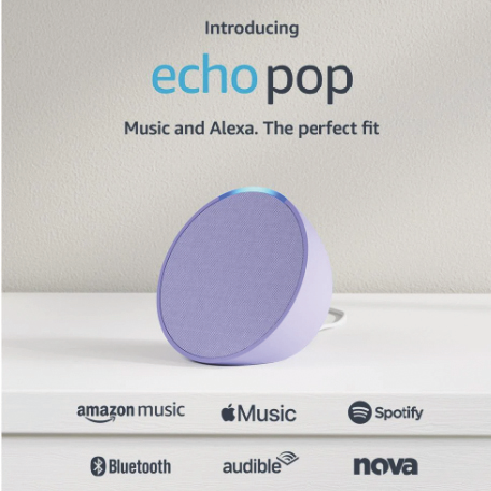 Add a touch of colour to your smart home with this compact Amazon Pop Smart Speaker in lovely lavender. Small enough to fit anywhere it gives you hands-free control through Alexa - just ask to play music check the weather set timers or control your compatible smart home devices. The low energy Bluetooth connection helps conserve power while the built-in Wi-Fi keeps you connected to all your favourite services. Backed by a 1-year manufacturer's warranty. Model number: B09ZXF8YM4.