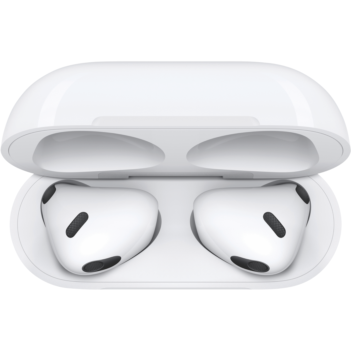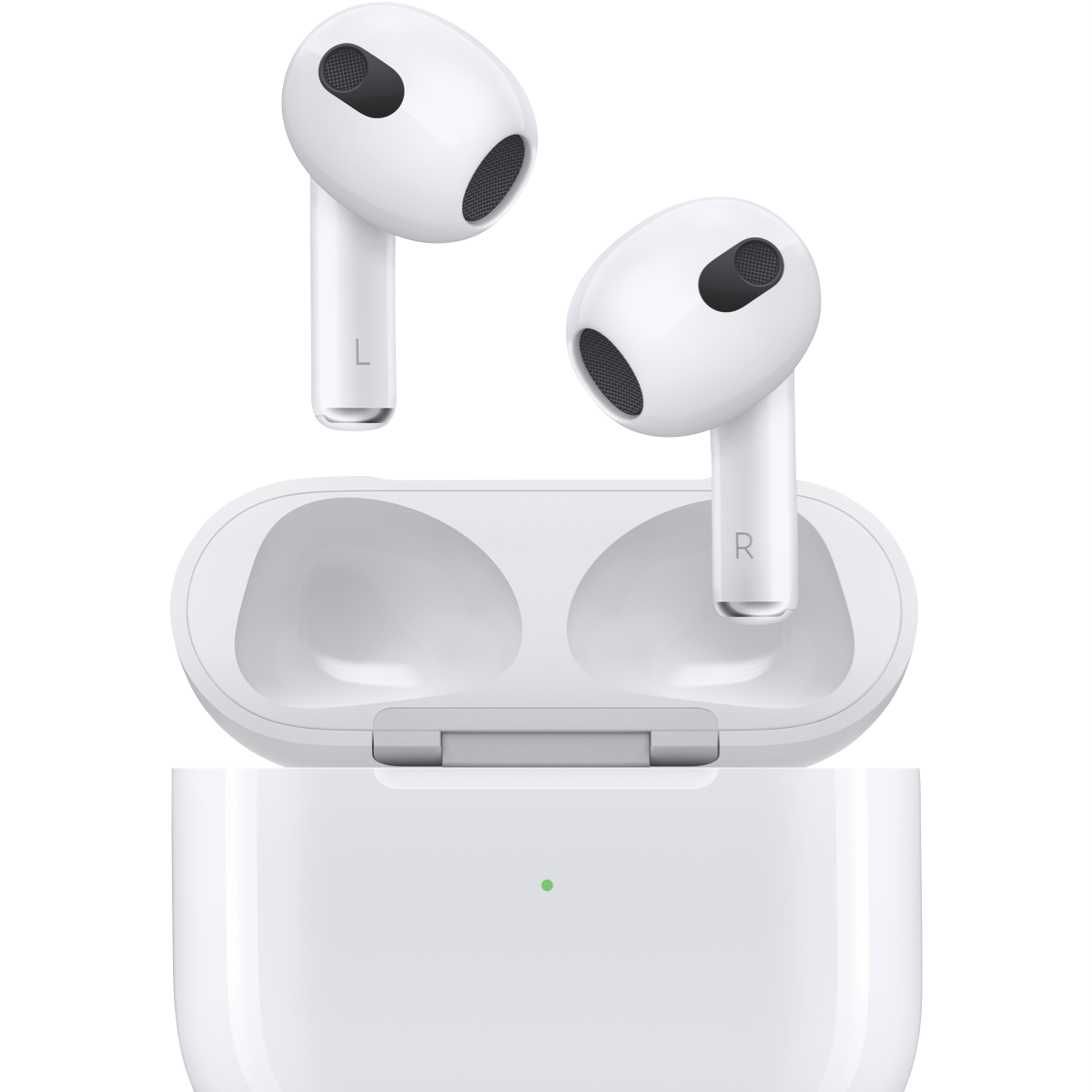 Introducing the all-new AirPods. Featuring spatial audio that places sound all around you(1) Adaptive EQ that tunes music to your ears and longer battery life(2). It's all sweat- and water-resistant and delivers an experience that's simply magical(3). (1) Spatial audio works with movies TV and video in supported apps. Requires iPhone or iPad. (2) Battery life varies by use and configuration; see apple.com/au/batteries for details. (3) AirPods (3rd generation) are sweat- and water-resistant for non-water sports and exercise. AirPods (3rd generation) were tested under controlled laboratory conditions and have a rating of IPX4 under IEC standard 60529. Sweat and water resistance are not permanent conditions and resistance might decrease as a result of normal wear. Do not attempt to charge wet AirPods (3rd generation); refer to support.apple.com/en-au/HT210711 for cleaning and drying instructions.