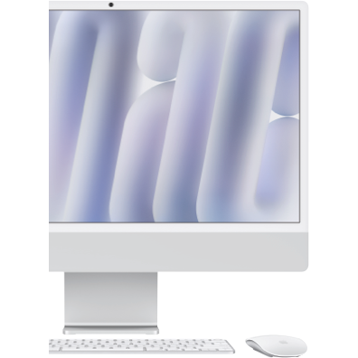 The ultimate all-in-one desktop iMac 24 Retina 4.5K Display with M4 chip 10-core GPU 16GB 256GB in Silver MWUU3X/A is supercharged by the M4 chip browsing and multitasking across apps feels snappier. With a stunning 24-inch 4.5K Retina display (2) in an iconic design and advanced camera mics and speakers. iMac is brilliant for work and play with strikingly thin desktop design.Built for Apple Intelligence that is coming in December 2024 (1) it is the personal intelligence system that helps you write express yourself and get things done effortlessly. With groundbreaking privacy protections it gives you peace of mind that no-one else can access your data not even Apple.You can get more things done faster with the Apple M4 chip. From editing photos to creating presentations to gaming you ll fly through work and play. The 24-inch 4.5K Retina display (2) features 500 nits of brightness and supports up to 1 billion colours.With advanced camera and audio stay perfectly framed and sound great with a 12MP Center Stage camera three studio-quality mics and six speakers with Spatial Audio.All your favourites including Microsoft Excel Adobe Photoshop and Zoom run lightning-fast in macOS with Apple Silicon (3).Mac works like magic with your other Apple devices you can view and control what s on your iPhone from your Mac with iPhone Mirroring (4) copy something on iPhone and paste it on Mac send texts with Messages or use your Mac to make and answer FaceTime calls (5).iMac features up to four Thunderbolt 4 ports that expands your accessory options and enabling lightning-fast data transfers. Connect up to two external 6K displays for a vast canvas to view your work and enjoy seamless connectivity with Wi-Fi 6E and Bluetooth 5.3.6.Every Mac comes with robust defences against viruses and malware as the privacy and security are built in within your devices. If your Mac is lost or stolen Find My can help you get it back. FileVault makes sure your files are encrypted so others cannot access them. And free security updates help keep your Mac protected.Disclaimers:Configurable options are available. iMac colour availability may vary. Nano-texture availability may vary.(1) Apple Intelligence is available in beta on all Mac models with M1 and later with Siri and device language set to US English as a macOS Sequoia update. English (Australia Canada Ireland New Zealand South Africa UK) language support available December 2024. Some features and support for additional languages like Chinese English (India Singapore) French German Italian Japanese Korean Portuguese Spanish Vietnamese and others will be coming over the course of the next year. (2) Actual diagonal screen size is 23.5 inches.(3) Apps are available on the App Store. Software and content may be sold separately. Title availability is subject to change.(4) Available on Mac computers with Apple silicon and Intel-based Mac computers with a T2 Security Chip. Requires that your iPhone and Mac are signed in with the same Apple Account using two-factor authentication your iPhone and Mac are near each other and have Bluetooth and Wi-Fi turned on and your Mac is not using AirPlay or Sidecar. Some iPhone features (such as camera and microphone) are not compatible with iPhone Mirroring.(5) FaceTime is not available in all countries or regions.(6) Wi Fi 6E available in countries and regions where supported.