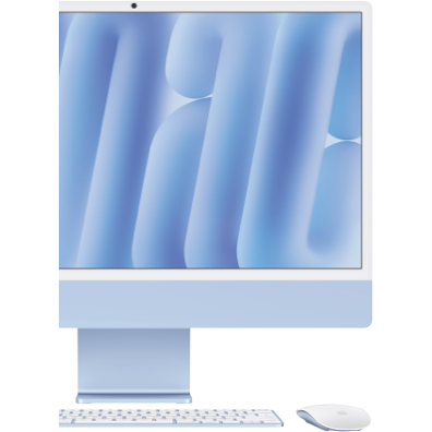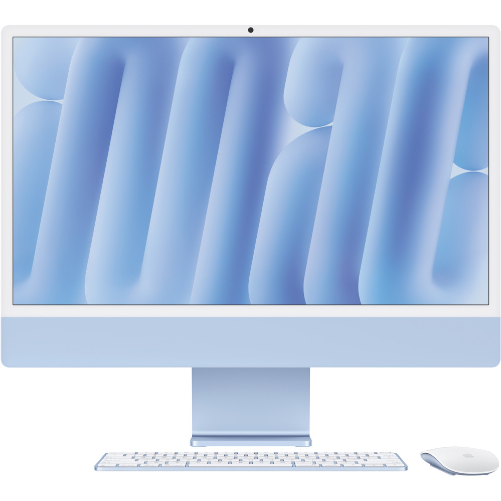 The ultimate all-in-one desktop iMac 24 Retina 4.5K Display with M4 chip 10-core GPU 16GB 512GB in Blue MWV33X/A is supercharged by the M4 chip browsing and multitasking across apps feels snappier. With a stunning 24-inch 4.5K Retina display (2) in an iconic design and advanced camera mics and speakers. iMac is brilliant for work and play with strikingly thin desktop design.Built for Apple Intelligence (1) it is the personal intelligence system that helps you write express yourself and get things done effortlessly. With groundbreaking privacy protections it gives you peace of mind that no-one else can access your data not even Apple.You can get more things done faster with the Apple M4 chip. From editing photos to creating presentations to gaming you ll fly through work and play. The 24-inch 4.5K Retina display (2) features 500 nits of brightness and supports up to 1 billion colours.With advanced camera and audio stay perfectly framed and sound great with a 12MP Center Stage camera three studio-quality mics and six speakers with Spatial Audio.All your favourites including Microsoft Excel Adobe Photoshop and Zoom run lightning-fast in macOS with Apple Silicon (3).Mac works like magic with your other Apple devices you can view and control what s on your iPhone from your Mac with iPhone Mirroring (4) copy something on iPhone and paste it on Mac send texts with Messages or use your Mac to make and answer FaceTime calls (5).iMac features up to four Thunderbolt 4 ports that expands your accessory options and enabling lightning-fast data transfers. Connect up to two external 6K displays for a vast canvas to view your work and enjoy seamless connectivity with Wi-Fi 6E and Bluetooth 5.3.6.Every Mac comes with robust defences against viruses and malware as the privacy and security are built in within your devices. If your Mac is lost or stolen Find My can help you get it back. FileVault makes sure your files are encrypted so others cannot access them. And free security updates help keep your Mac protected.Disclaimers:Configurable options are available. iMac colour availability may vary. Nano-texture availability may vary.(1) Apple Intelligence is available in beta on all Mac models with M1 and later with Siri and device language set to US English as a macOS Sequoia update. English (Australia Canada Ireland New Zealand South Africa UK) language support available December 2024. Some features and support for additional languages like Chinese English (India Singapore) French German Italian Japanese Korean Portuguese Spanish Vietnamese and others will be coming over the course of the next year. (2) Actual diagonal screen size is 23.5 inches.(3) Apps are available on the App Store. Software and content may be sold separately. Title availability is subject to change.(4) Available on Mac computers with Apple silicon and Intel-based Mac computers with a T2 Security Chip. Requires that your iPhone and Mac are signed in with the same Apple Account using two-factor authentication your iPhone and Mac are near each other and have Bluetooth and Wi-Fi turned on and your Mac is not using AirPlay or Sidecar. Some iPhone features (such as camera and microphone) are not compatible with iPhone Mirroring.(5) FaceTime is not available in all countries or regions.(6) Wi Fi 6E available in countries and regions where supported.