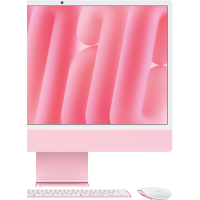 The ultimate all-in-one desktop iMac 24 Retina 4.5K Display with M4 chip 10-core GPU 24GB 512GB in Pink MD2U4X/A is supercharged by the M4 chip browsing and multitasking across apps feels snappier. With a stunning 24-inch 4.5K Retina display (2) in an iconic design and advanced camera mics and speakers. iMac is brilliant for work and play with strikingly thin desktop design.Built for Apple Intelligence that is coming in December 2024 (1) it is the personal intelligence system that helps you write express yourself and get things done effortlessly. With groundbreaking privacy protections it gives you peace of mind that no-one else can access your data not even Apple.You can get more things done faster with the Apple M4 chip. From editing photos to creating presentations to gaming you ll fly through work and play. The 24-inch 4.5K Retina display (2) features 500 nits of brightness and supports up to 1 billion colours.With advanced camera and audio stay perfectly framed and sound great with a 12MP Center Stage camera three studio-quality mics and six speakers with Spatial Audio.All your favourites including Microsoft Excel Adobe Photoshop and Zoom run lightning-fast in macOS with Apple Silicon (3).Mac works like magic with your other Apple devices you can view and control what s on your iPhone from your Mac with iPhone Mirroring (4) copy something on iPhone and paste it on Mac send texts with Messages or use your Mac to make and answer FaceTime calls (5).iMac features up to four Thunderbolt 4 ports that expands your accessory options and enabling lightning-fast data transfers. Connect up to two external 6K displays for a vast canvas to view your work and enjoy seamless connectivity with Wi-Fi 6E and Bluetooth 5.3.6.Every Mac comes with robust defences against viruses and malware as the privacy and security are built in within your devices. If your Mac is lost or stolen Find My can help you get it back. FileVault makes sure your files are encrypted so others cannot access them. And free security updates help keep your Mac protected.Disclaimers:Configurable options are available. iMac colour availability may vary. Nano-texture availability may vary.(1) Apple Intelligence is available in beta on all Mac models with M1 and later with Siri and device language set to US English as a macOS Sequoia update. English (Australia Canada Ireland New Zealand South Africa UK) language support available December 2024. Some features and support for additional languages like Chinese English (India Singapore) French German Italian Japanese Korean Portuguese Spanish Vietnamese and others will be coming over the course of the next year. (2) Actual diagonal screen size is 23.5 inches.(3) Apps are available on the App Store. Software and content may be sold separately. Title availability is subject to change.(4) Available on Mac computers with Apple silicon and Intel-based Mac computers with a T2 Security Chip. Requires that your iPhone and Mac are signed in with the same Apple Account using two-factor authentication your iPhone and Mac are near each other and have Bluetooth and Wi-Fi turned on and your Mac is not using AirPlay or Sidecar. Some iPhone features (such as camera and microphone) are not compatible with iPhone Mirroring.(5) FaceTime is not available in all countries or regions.(6) Wi Fi 6E available in countries and regions where supported.