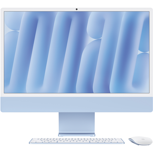 The ultimate all-in-one desktop iMac 24 Retina 4.5K Display with M4 chip 8-core GPU 16GB 256GB in Blue MWUF3X/A is supercharged by the M4 chip browsing and multitasking across apps feels snappier. With a stunning 24-inch 4.5K Retina display (2) in an iconic design and advanced camera mics and speakers. iMac is brilliant for work and play with strikingly thin desktop design.Built for Apple Intelligence (1) it is the personal intelligence system that helps you write express yourself and get things done effortlessly. With groundbreaking privacy protections it gives you peace of mind that no-one else can access your data not even Apple.You can get more things done faster with the Apple M4 chip. From editing photos to creating presentations to gaming you ll fly through work and play. The 24-inch 4.5K Retina display (2) features 500 nits of brightness and supports up to 1 billion colours.With advanced camera and audio stay perfectly framed and sound great with a 12MP Center Stage camera three studio-quality mics and six speakers with Spatial Audio.All your favourites including Microsoft Excel Adobe Photoshop and Zoom run lightning-fast in macOS with Apple Silicon (3).Mac works like magic with your other Apple devices you can view and control what s on your iPhone from your Mac with iPhone Mirroring (4) copy something on iPhone and paste it on Mac send texts with Messages or use your Mac to make and answer FaceTime calls (5).iMac features up to four Thunderbolt 4 ports that expands your accessory options and enabling lightning-fast data transfers. Connect up to two external 6K displays for a vast canvas to view your work and enjoy seamless connectivity with Wi-Fi 6E and Bluetooth 5.3.6.Every Mac comes with robust defences against viruses and malware as the privacy and security are built in within your devices. If your Mac is lost or stolen Find My can help you get it back. FileVault makes sure your files are encrypted so others cannot access them. And free security updates help keep your Mac protected.Disclaimers:Configurable options are available. iMac colour availability may vary. Nano-texture availability may vary.(1) Apple Intelligence is available in beta on all Mac models with M1 and later with Siri and device language set to US English as a macOS Sequoia update. English (Australia Canada Ireland New Zealand South Africa UK) language support available December 2024. Some features and support for additional languages like Chinese English (India Singapore) French German Italian Japanese Korean Portuguese Spanish Vietnamese and others will be coming over the course of the next year. (2) Actual diagonal screen size is 23.5 inches.(3) Apps are available on the App Store. Software and content may be sold separately. Title availability is subject to change.(4) Available on Mac computers with Apple silicon and Intel-based Mac computers with a T2 Security Chip. Requires that your iPhone and Mac are signed in with the same Apple Account using two-factor authentication your iPhone and Mac are near each other and have Bluetooth and Wi-Fi turned on and your Mac is not using AirPlay or Sidecar. Some iPhone features (such as camera and microphone) are not compatible with iPhone Mirroring.(5) FaceTime is not available in all countries or regions.(6) Wi Fi 6E available in countries and regions where supported.