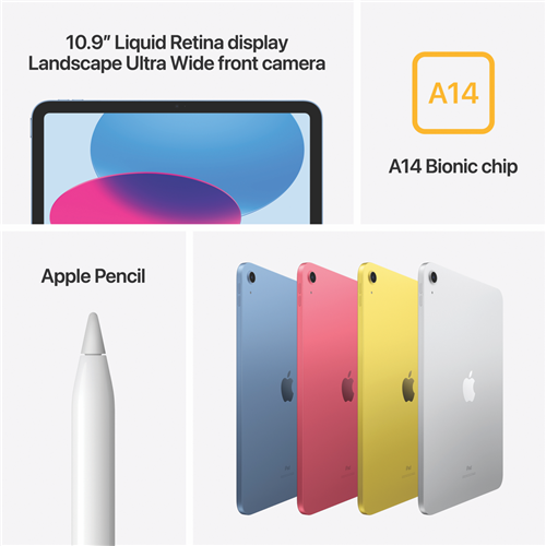 • A14 Bionic chip, 64GB storage, runs iPadOS 16