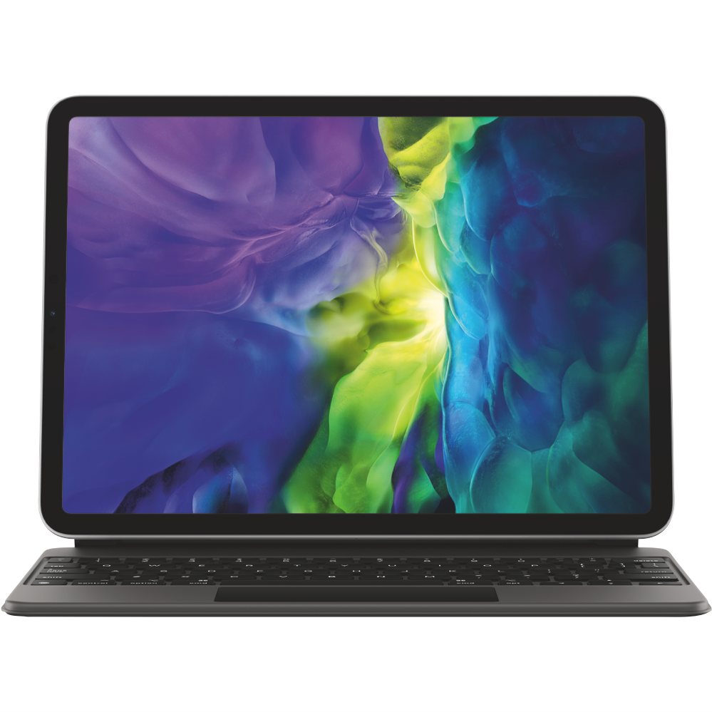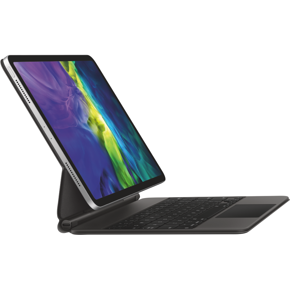 The Magic Keyboard is an amazing companion for iPad Pro and iPad Air (4th generation). It features an incredible typing experience a trackpad that opens up new ways to work with iPadOS a USB C port for pass-through charging and front and back protection. The Magic Keyboard has a floating cantilevered design allowing you to attach iPad Pro or iPad Air magnetically and smoothly adjust it to the perfect viewing angle for you.