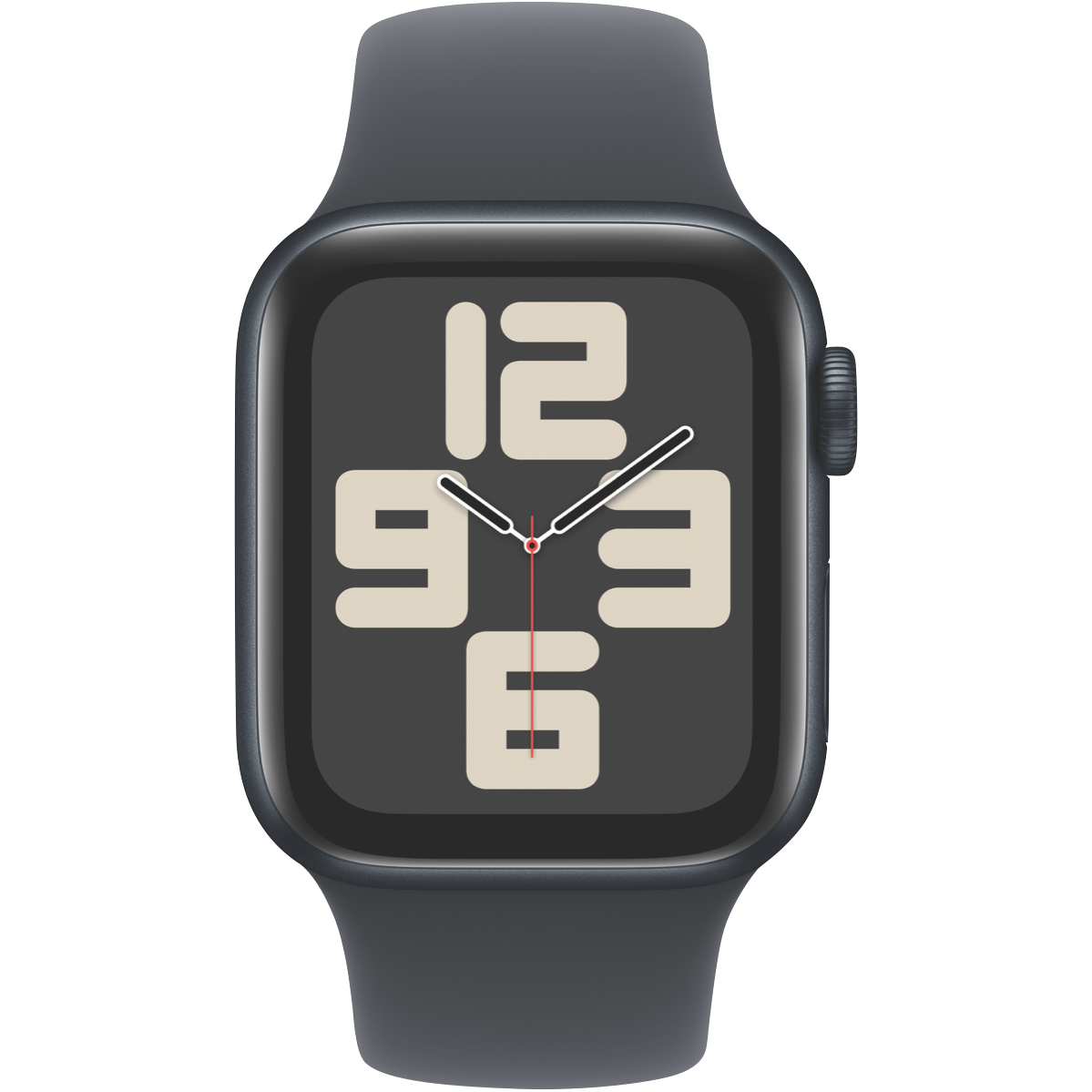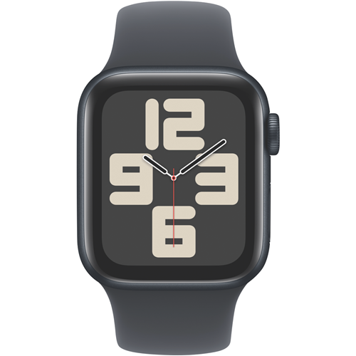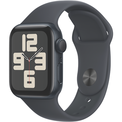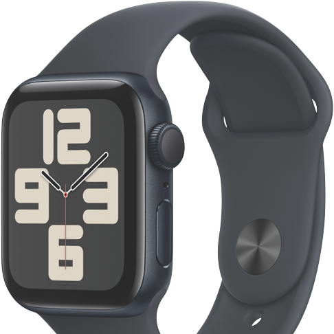 The Apple Watch SE GPS 40mm Midnight Aluminium Case with Midnight Sport Band - S/M MXE73ZP/A has the essential features to help stay connected active healthy and safe. It's perfect to set up with Apple Watch For Your Kids(1). watchOS 11 brings more intelligence personalisation and connectivity. Send a text take a call listen to music and podcasts use Siri or call for help with Emergency SOS(4). Apple Watch SE (GPS) works with an iPhone or Wi-Fi to keep connected. Get health insights including notifications for an irregular high or low heart rhythm (5). Get help when you need it with Fall Detection(2) Crash Detection and Emergency SOS(4). Automatically notify loved ones when arriving at a destination with Check In(6). Works seamlessly with Apple devices and services(7) - unlock a Mac automatically find devices easily and pay with Apple Pay. 50m water resistance(8). The Workout app gives a range of ways to train plus advanced metrics for more insights into workout performance and Apple Watch comes with three months of Apple Fitness+ free(9). Apple Watch SE (2nd generation) is carbon neutral when paired with selected bands. Disclaimers: Apple Watch SE requires iPhone XS or later with iOS 18 or later. (1) Not all features will be available if Apple Watch is set up through Apple Watch For Your Kids. Carrier plan required for cellular service. Contact a service provider for more details. (2) Fall Detection updates are available on Apple Watch Series 4 and later with watchOS 8 and later. (3) Features subject to change. Some features applications and services may not be available in all regions or all languages. (4) Emergency SOS requires a mobile network connection or Wi-Fi calling with an internet connection from your Apple Watch or nearby iPhone. (5) Irregular rhythm notification requires the latest version of watchOS and iOS. It is not intended for use by people under 22 years old or those diagnosed with atrial fibrillation. The device is not intended to replace traditional methods of diagnosis. Consult a doctor if atrial fibrillation is detected or on symptoms of a heart attack stroke or other cardiovascular conditions. (6) Check In requires watchOS 11 or later for the sender and iOS 17 or later for the recipient. Location sharing is not supported in South Korea and might be unavailable in other regions due to local laws. (8) Apple Watch SE has a water resistance rating of 50 metres under ISO standard 22810:2010. This means that it may be used for shallow water activities like swimming in a pool or ocean but should not be used for scuba diving or waterskiing or other activities involving high velocity water or submersion below shallow depth. Water resistance is not a permanent condition and can diminish over time. (9) New subscribers only. $14.99 per month after trial. Only one offer per Apple Account and only one offer per family if part of a Family Sharing group. Offer good for three months after eligible device activation. Plan automatically renews until cancelled.