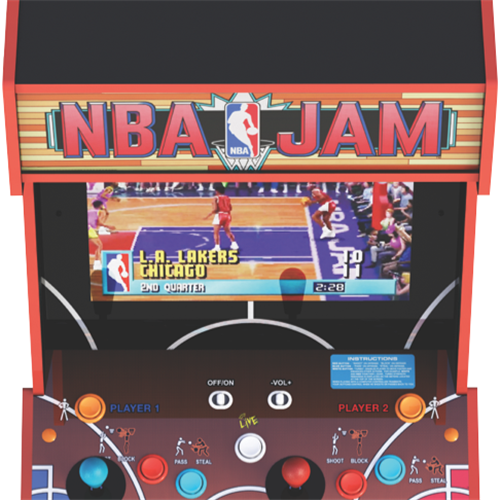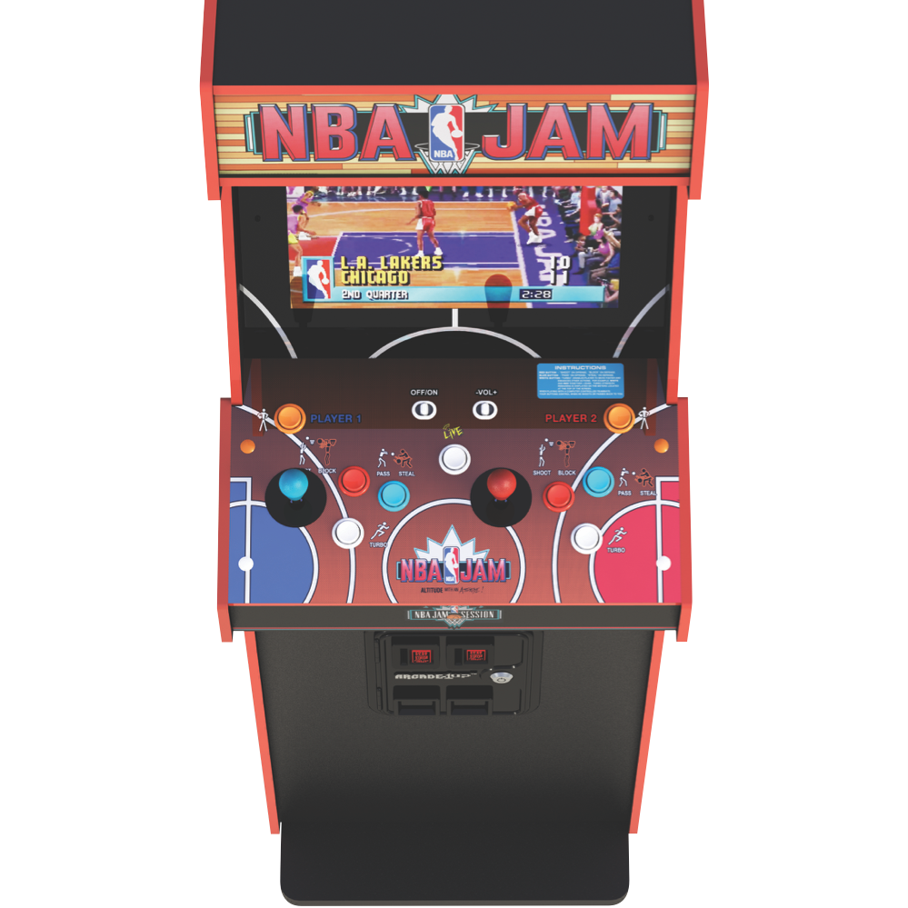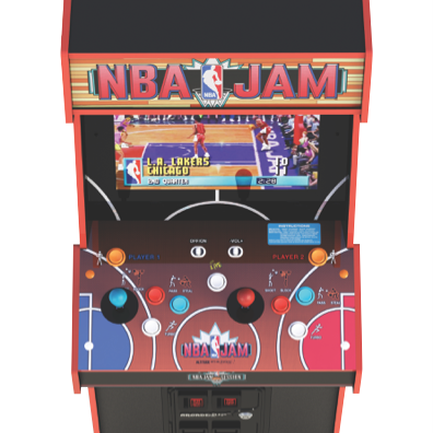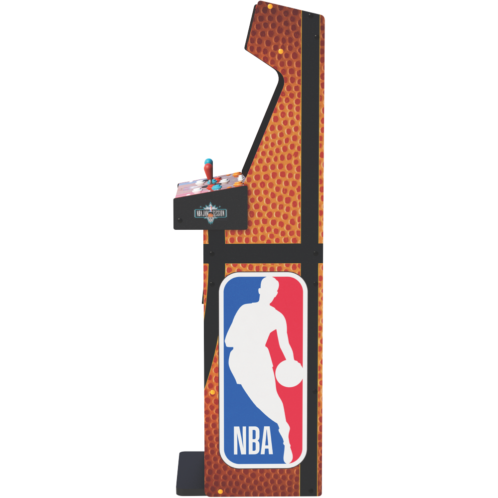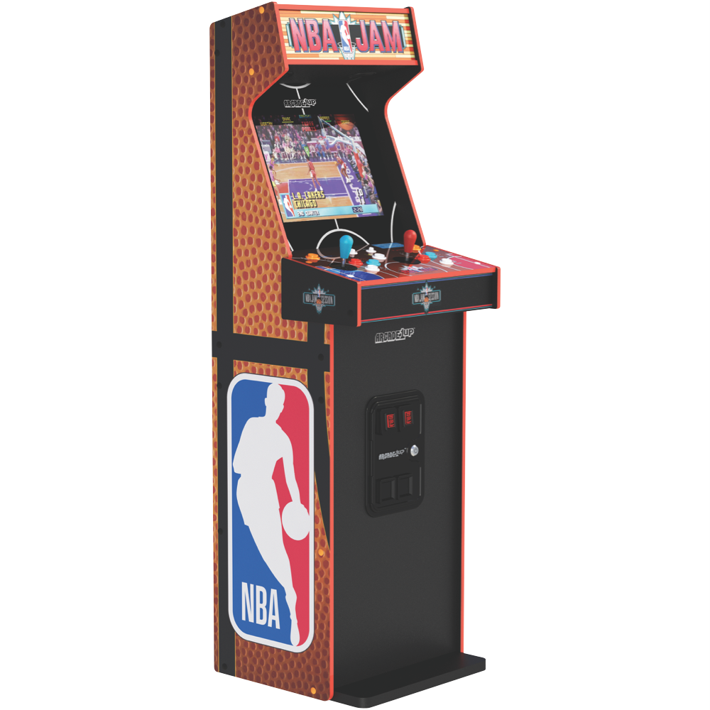 Step onto the court and experience the ultimate slam-dunk of nostalgia with the Arcade1Up NBA JAM 2-Player Deluxe Arcade Machine! Prepare for an adrenaline-fueled journey through hoops history as you relive the glory days of arcade gaming. With NBA JAM NBA JAM TOURNAMENT EDITION and NBA HANGTIME all packed into one sleek cabinet the action never stops. Not just a pretty face this machine boasts a stunning light-up marquee and 3D faux molded coin doors that will make every gaming session feel like a championship match. Dual speakers deliver dynamic sound to amplify every dunk and buzzer-beater while the crisp 17 BOE color monitor brings the action to life in vivid detail. Lastly challenge friends and foes alike with the built-in Wi-Fi supporting online multiplayer for up to 4 players with the ability to lock any game with a code so only you and your friends with the code can play. But wait there's more! We've taken the arcade experience to the next level with our newest feature: a slimmer lighter design that makes this deluxe edition even more irresistible. Standing over 5 feet tall this arcade masterpiece is the centerpiece your game room deserves. Whether you're a die-hard fan or a newcomer to the world of arcade classics the Arcade1Up NBA JAM 2-Player Deluxe Arcade Machine is your ticket to endless fun. Get ready to dominate the court like never before!