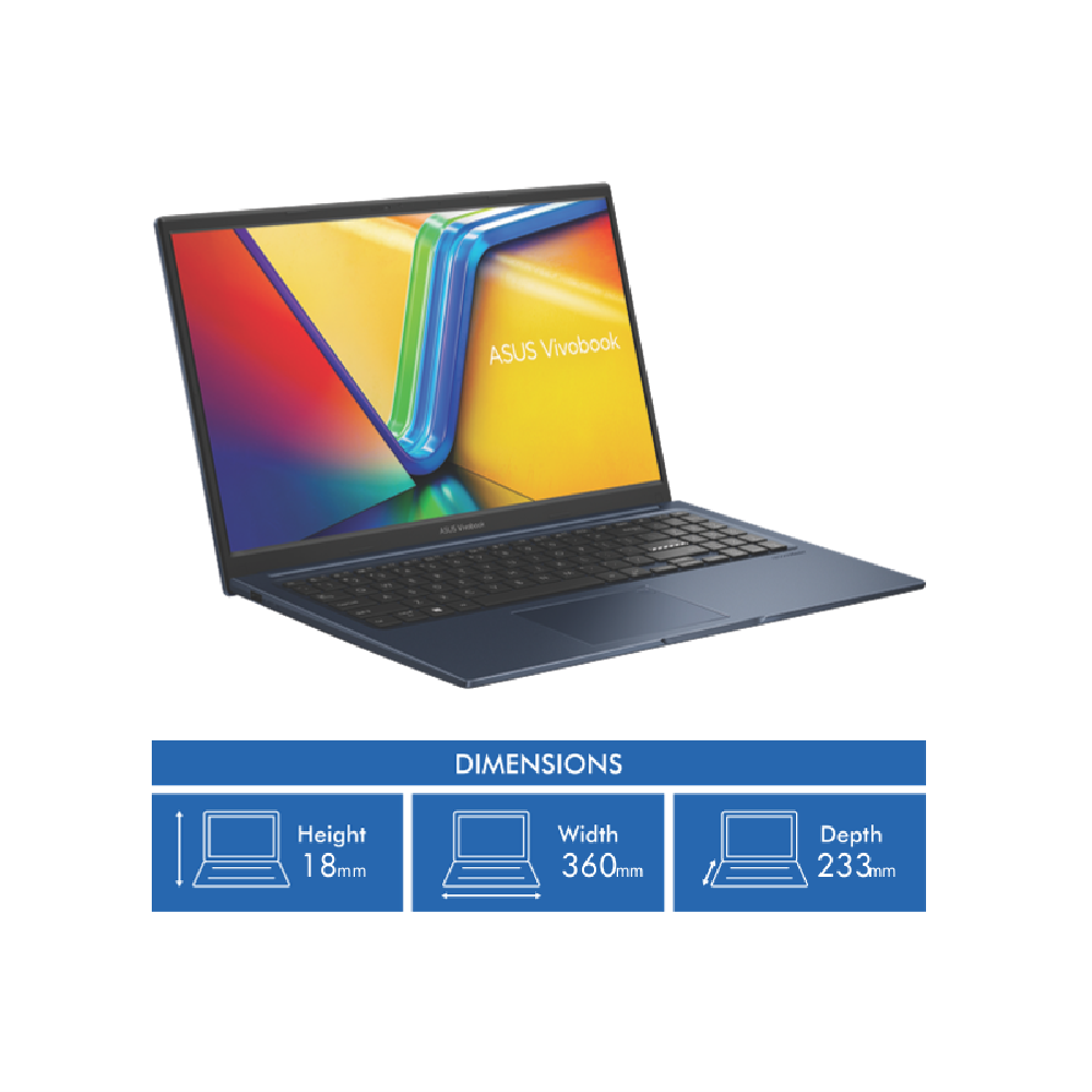Looking for a laptop that can keep up with your busy day? This Asus Vivobook 15 packs impressive power in a sleek Quiet Blue design. The 15.6 anti-glare Full HD display gives you clear visuals without annoying reflections while the Intel Core i7-1355U processor (up to 5.0 GHz) paired with 16GB memory handles multitasking with ease. Store all your files on the speedy 1TB NVMe PCIe SSD and stay connected with Wi-Fi 6E and Bluetooth 5.3. At just 1.7kg it's light enough to carry around plus the 720p HD camera includes a privacy shutter for when you're not on video calls. The built-in speakers and microphone array handle your audio needs while the variety of ports (HDMI USB-A USB-C and audio jack) connect all your devices. Get up to 6 hours of battery life to power through your workday. Windows 11 Home comes pre-installed on this versatile Vivobook 15 (F1504VA-BQ505W) with 1 year warranty.