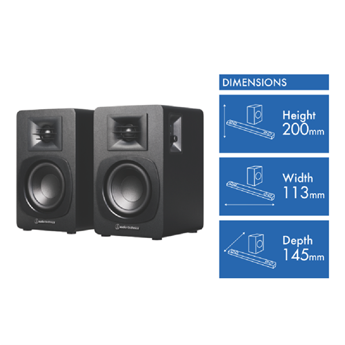 Ready to upgrade your audio setup? Check out the Audio Technica AT-SP3X powered Bluetooth bookshelf speakers. With 30 watts max output per channel these sleek black speakers deliver impressive sound quality. You'll enjoy a wide frequency response from 55 to 20000 Hz bringing your music movies and more to life. Plus the convenient Bluetooth connectivity lets you wirelessly stream your favorite tunes from your devices. Backed by a 1-year manufacturer's warranty the AT-SP3X speakers are a reliable choice for enhancing your audio experience.