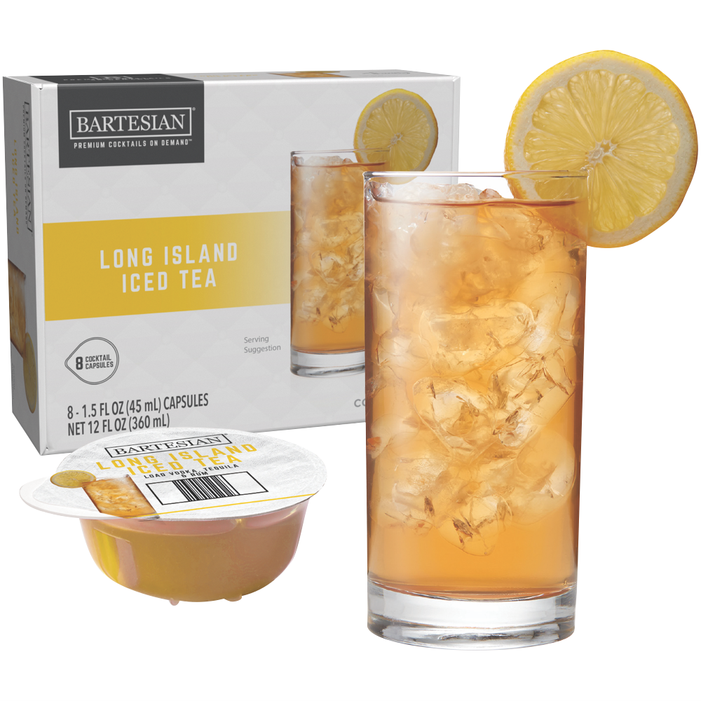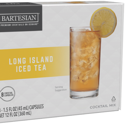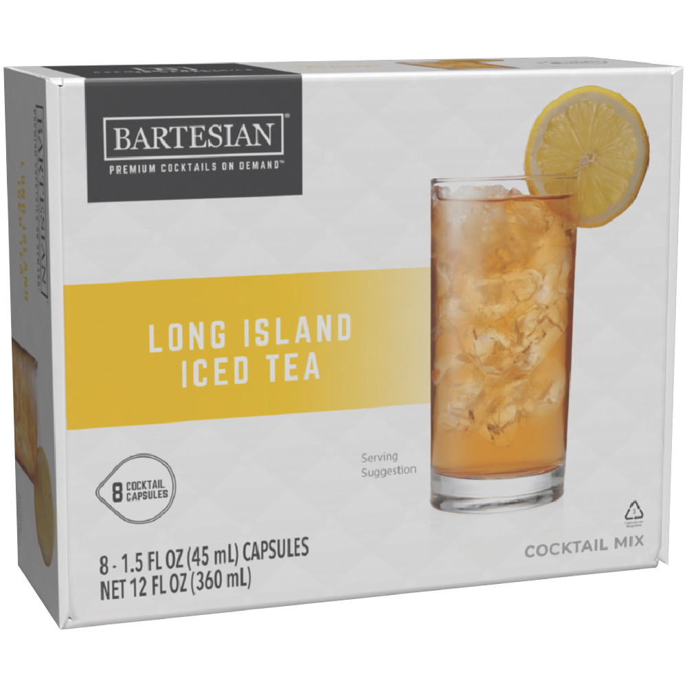 Mix up your next party with Bartesian's 8 Pack Long Island Iced Tea Capsules. These convenient cocktail capsules combine just the right amount of vodka tequila and rum flavors rounded out with cola notes and liqueurs made from bitter and sweet citrus peels. Simply pop a capsule into your Bartesian machine add your own alcohol and enjoy a perfectly mixed Long Island Iced Tea in seconds. The capsules themselves don't contain alcohol so you can control the strength of your drink. With eight capsules per pack you'll have enough for your next gathering. Model number: 168765.