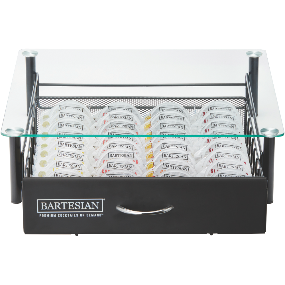 Keep your Bartesian cocktail capsules organized and ready to use with this clever storage drawer. It holds up to 36 individual capsules in one convenient spot so you'll always have your favorite drinks on hand. The drawer is built with tempered glass for a stylish look that's also durable. What makes this design really smart is that it's strong enough to support your Bartesian cocktail maker right on top saving valuable counter space in your kitchen. Part number: 168820.