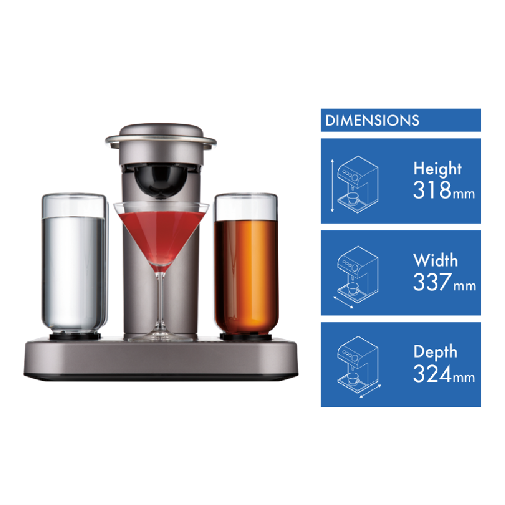 Transform your home into the ultimate cocktail bar with the Bartesian Premium Cocktail Maker. This clever machine crafts over 60 cocktail varieties with just one touch no complicated recipes or prep work needed. Simply insert a capsule containing the perfect blend of juices bitters and extracts and the smart technology reads the barcode to suggest the perfect glass. You can customize your drink strength with four options - mocktail light regular or strong - and the whole process takes just 30 seconds. The touch screen controls make operation simple and it even self-cleans between cocktails. Comes with five 900ml glass spirit bottles with labelled lids for vodka whiskey rum gin and tequila (spirits sold separately) plus a removable power cord and bar mat. Backed by a 1-year manufacturer's warranty. Model number: 168764.