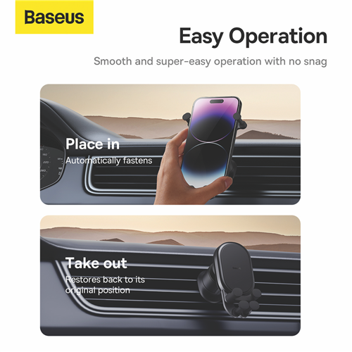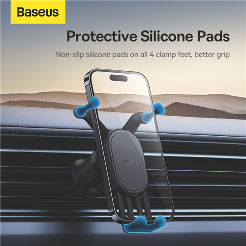 Get a stable and secure hold for your phone while driving with the Baseus Stable Gravitational Vent Mount Air Car Phone Holder. This 119 gram car mount clips securely to any air vent keeping your phone in sight for calls music and navigation. Its adjustable clip and pivoting cradle enable both portrait and landscape views. With its strong grip and anti-shake design your phone stays put on bumpy roads. Take calls hands-free or stream music with no worries of your phone falling. Measuring 82mm x 67mm x 132mm this car holder fits phones of most sizes including larger models. It installs in seconds with no tools required. Just clip it onto a vent and pop your phone in the cradle. Enjoy safe convenient access to your phone's screen at eye level while driving. The manufacturer's part number for this product is SUWX020001. Finally drive safer with your phone secured in the optimal spot.