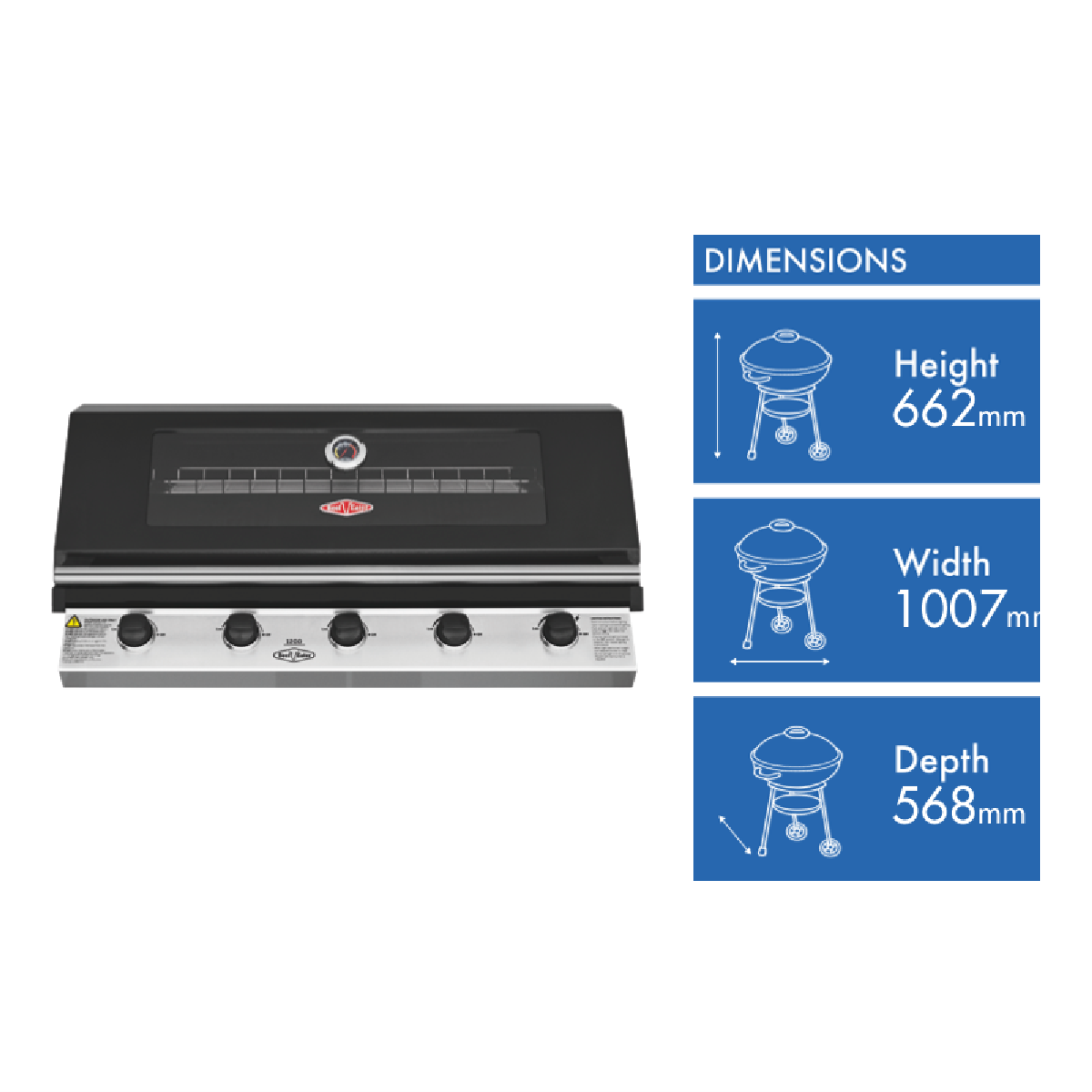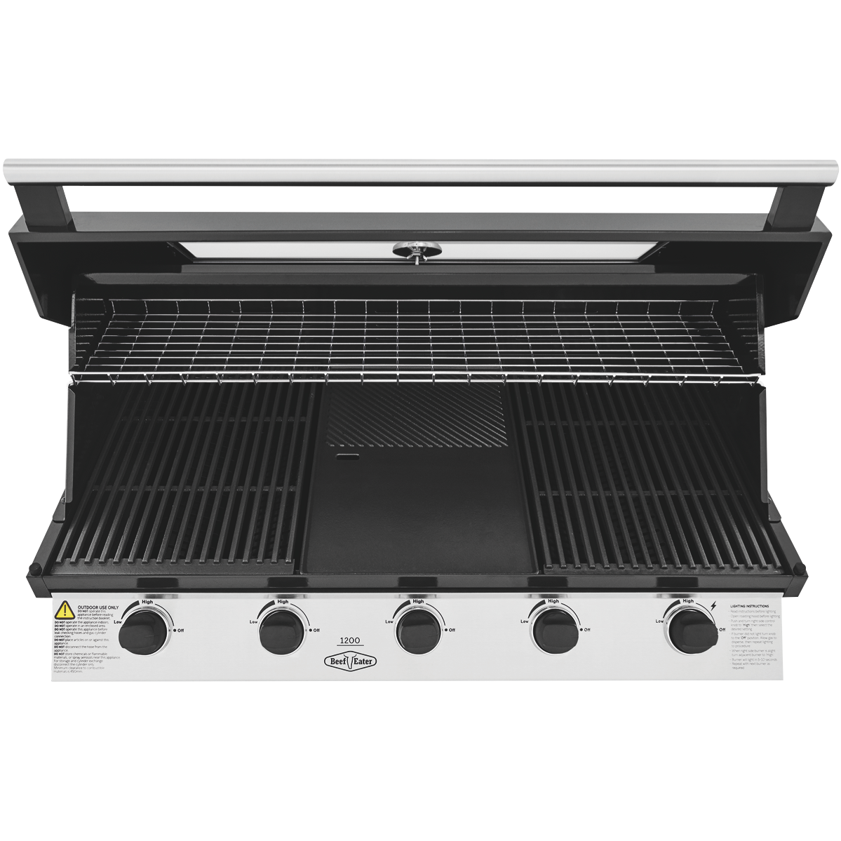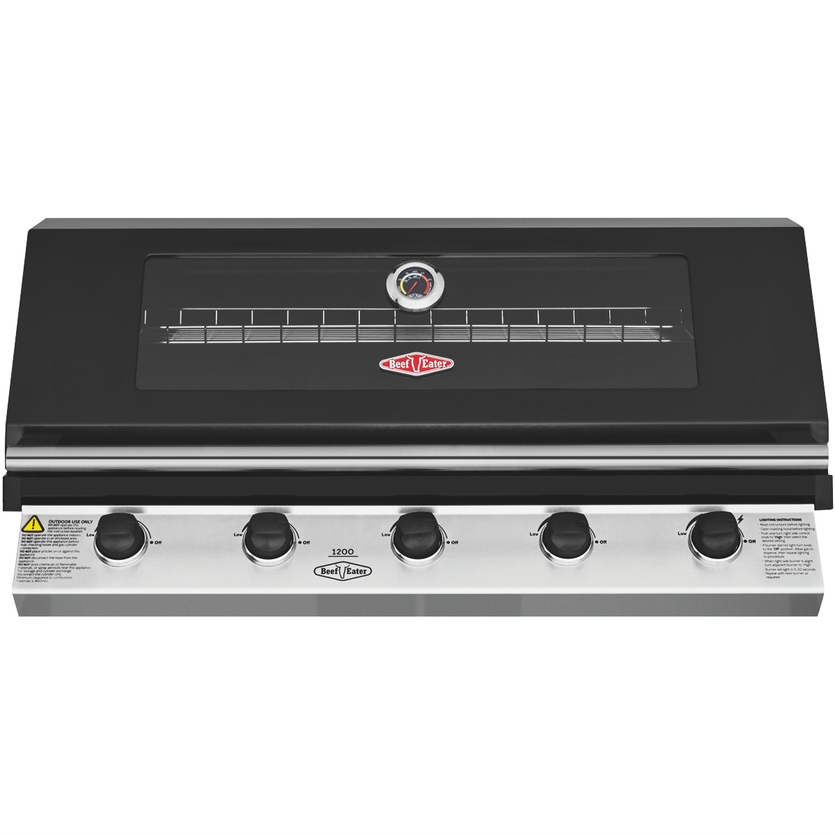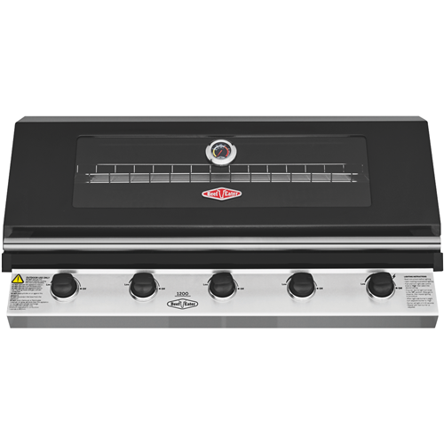 Cook up in style with the BeefEater 1200 Series Stainless Steel 5 Burner Built-in LPG BBQ with Cast Iron Burners & Grills. Sear and seal quickly with cast iron 15 megajoule burners. Evenly grill and bake with the rust resistant cast iron cooktop. Keep an eye with the large viewing window and built-in temperature gauge to ensure the lid stays closed and roasts retain their moistness. It has a warming tray that rolls away when not in use and quartz one press start for simple ignition. The flame tamer prevents drippings from hitting the exposed fire minimising burning. Built-in oil channels assist in keeping the whole setup clean and minimising scrubbing after the delicious barbeque.
