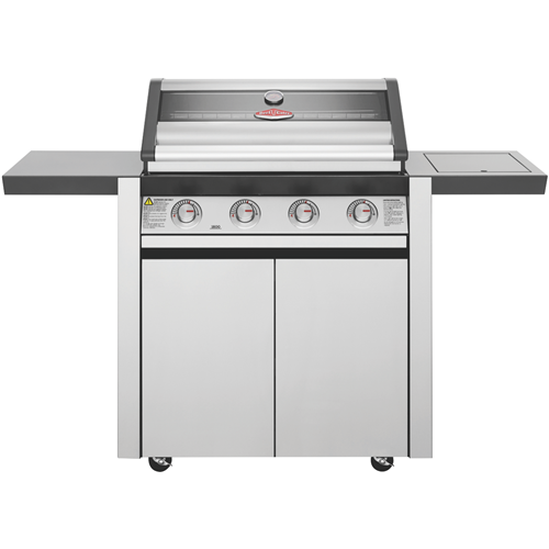 The BeefEater 1600 Series Stainless Steel 4 Burner BBQ & Trolley with Side Burner Cast Iron Burners & Grills BMG1641SA is one of the most durable flexible and efficient cooking systems available. The cast iron heats quickly maintains consistency and lasts a very long time. With 15 megajoules of power in each burner you can always turn the power up or down for precise cooking speeds. Stainless steel vaporisers efficiently disperse the flames across the grill and plate surfaces whilst reducing flare ups. Cook up a feast for many for years to come on the spacious durable cooktop. The cast iron cooking surface doesn't chip and is rust resistant yet strongly holds its warmth for the best cooking experience. Keep an eye on what s cooking without lifting the lid and maintain heat using the built in temperature gauge and peer through the full width glass viewing window to check how the sausages or brisket are doing. Start cooking quickly and easily with the quartz one start ignition that works first time every time. Built to withstand high heat over time the burner box is built of high grade enamel. Fully seam welded throughout moisture and grease can't get into the gaps to create rust. Designed for an easy clean-up the hotplate has raised sides preventing grease & oil over spilling drawing it instead to the plate opening and into the front access catchment tray. Turn the hotplate burners up for searing and the grill burners down for slow cooks. Get a practical BBQ trolley with ample storage for gas cylinders and barbeque accessories along with spacious side shelves. The bump stop trolley feature prevents pushing the BBQ directly against the wall providing extra ventilation and preventing damage when rolled back.