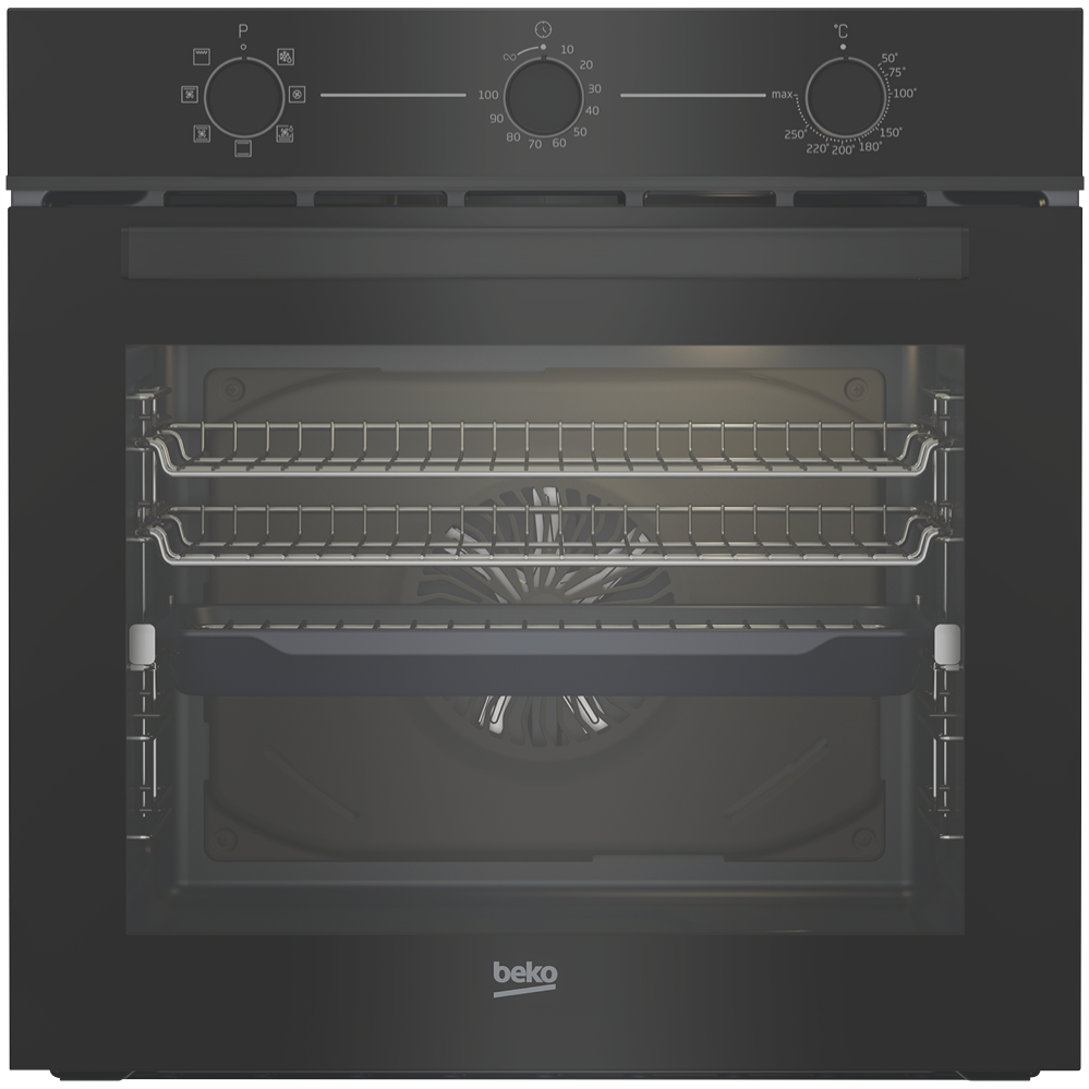 Create delicious meals with the multifunction cooking convenience of this sleek black glass and dark stainless steel Beko 60cm Multifunction Aeroperfect Oven BBO6850MDX. Beko's Aeroperfect Technology allows you to bake perfect cupcakes roast a delicious Sunday dinner or use the grill to make a hearty but healthy breakfast by the uniform hot air distribution throughout the oven; minimising temperature fluctuation to ensure even and precise cooking every time. This Beko oven offers cooking flexibility by combining a fan and conventional oven and a host of different functions to suit any dish. It has a 72-litre usable capacity for cooking more food at once. Plus catalytic back and side walls makes cleaning quick and easy cleverly absorbing cooking grease and reducing food odours without the need for harsh cleaning chemicals.
