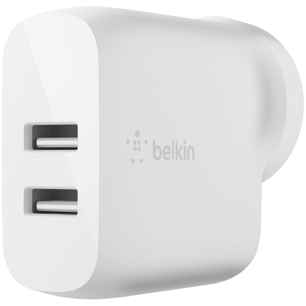 Step up your charging game with the Belkin 12W Dual USB-A Wall Charger. This sleek and compact charger packs a powerful punch delivering optimized charging speeds for your devices. With two USB-A ports you can juice up your phone and tablet or two phones at the same time. At just 29mm wide it conveniently takes up minimal space on your power outlet without blocking the other socket. Whether you're home or away its travel-friendly design slips easily into your bag. With a lengthy two year warranty for peace of mind you can charge with confidence knowing Belkin quality is backed comprehensively. So maximize your charging capacity and minimize clutter with this modern essential. The slim twin USB-A ports pump out 12 watts of power to get your devices charged up in no time. For optimized charging on the go the Belkin 12W Dual USB-A Wall Charger is the perfect fit. The manufacturer's part number for this product is WCB002AUWH.