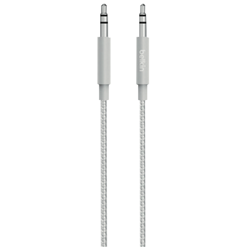 Connect your devices and immerse yourself in high-quality sound with the Belkin 3.5mm Aux Premium Braided Cable. This auxiliary cable allows you to play music podcasts and more by connecting your smartphone tablet or laptop to speakers car audio systems and other devices. The premium construction delivers dependable performance with tangle-free braided silver cabling and gold-plated connectors for optimized signal transfer. Enjoy crisp clear audio and stylish design that complements your tech. The versatile auxiliary cable works with nearly any device that supports 3.5mm AUX input. With a 1 year warranty you can be confident in reliable connectivity wherever you go. Experience the difference premium quality makes - upgrade to the Belkin AUX cable today. The manufacturer's part number for this product is AV10164BT04-SLV.