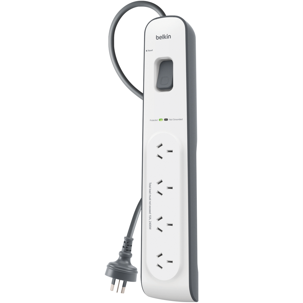 Enjoy the peace of mind that comes with surge protection for your devices with the Belkin 4 Port Surge Protector. This Australian power board provides four widely spaced outlets to accommodate chunky plugs and transformers. The two metre cord allows flexible placement while the integrated surge protection shields your equipment from harmful power spikes. With a generous two year warranty you can plug in computers TVs game consoles and more with confidence. This surge protector's key features help safeguard your sensitive electronics so you can work and play without worry. For versatile reliable surge protection choose the Belkin 4 Port Surge Protector. The manufacturer's part number for this product is BSV400AU2M. Check out this surge protector to keep your devices running safely.