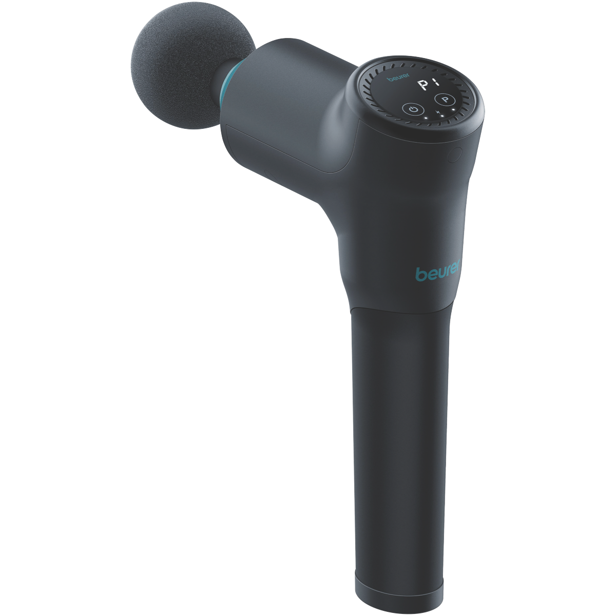Treat yourself to powerful relief from muscle tension and pain with the Beurer Deluxe Massage Gun. This advanced massage tool features a powerful brushless motor that delivers 1200 to 3000 percussions per minute to help relax tight muscles and release knots. With 9 intensity levels and 3 auto massage programs you can customize your massage experience for targeted muscle recovery. The ergonomic design includes an easy-grip handle and lightweight construction weighing just 1.075kg so you can use it comfortably anywhere on your body. Additional features like the touchscreen display LED lights and included carry case make this massage gun a convenient portable wellness solution. Experience the soothing power of percussive therapy with the Beurer Deluxe Massage Gun and unlock the benefits of improved circulation reduced inflammation and faster muscle recovery. The manufacturer's part number for this product is MG185. Give your muscles the care they deserve and order the Beurer Deluxe Massage Gun today.