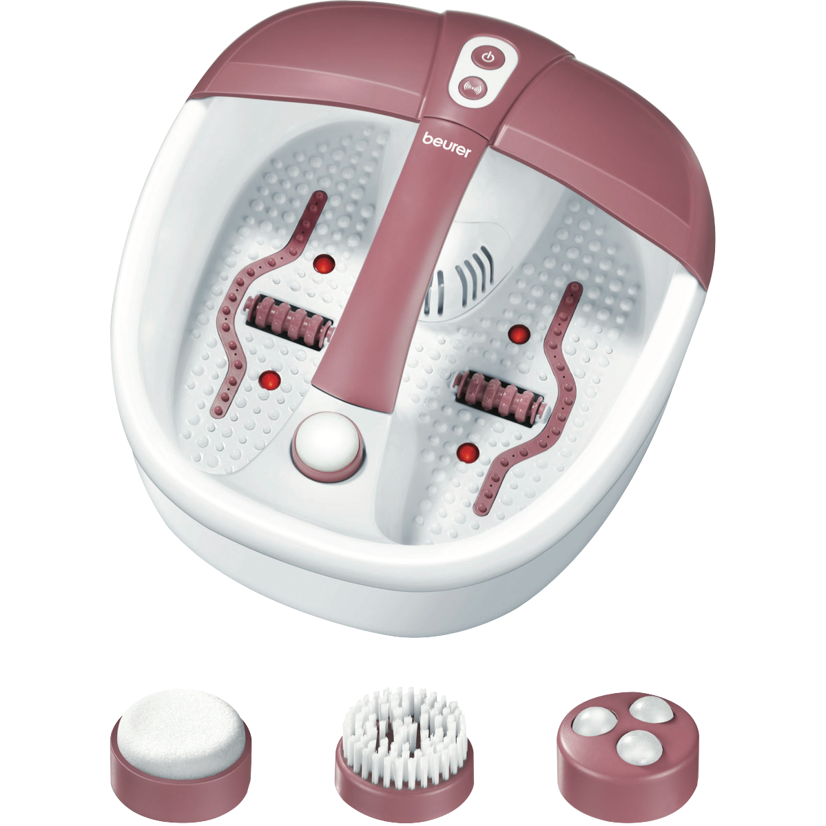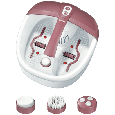 Indulge your feet with the ultimate home spa experience using the Beurer Footspa with Aromotherapy. This white foot spa harnesses the power of vibration massage bubble massage and water tempering across 3 indulgent functions to melt away tension and rejuvenate tired aching feet. With a vibration massage that targets pressure points a bubble massage that envelops feet in soothing bubbles and water tempering to maintain the perfect temperature this foot spa delivers professional-grade treatments from the comfort of home. An aroma filter allows you to enhance your soak with essential oils for a sensory spa ritual. Equipped with 3 interchangeable pedicure attachments removable roller attachments infrared light and delivering 140W of power this foot spa works diligently to smooth massage and revive. At 410L x 380W x 170H mm in size and weighing just 1.92kg it's easy to store and set up. Give your feet the pampering they deserve and add the Beurer Footspa with Aromotherapy to your self-care routine today. The manufacturer's part number for this product is FB35. Bring the luxury of a professional spa to your home with the Beurer Footspa and transform your pedicure regimen.