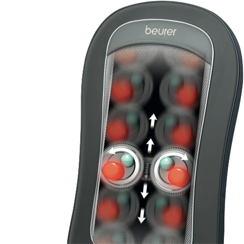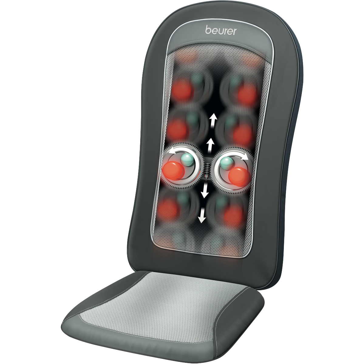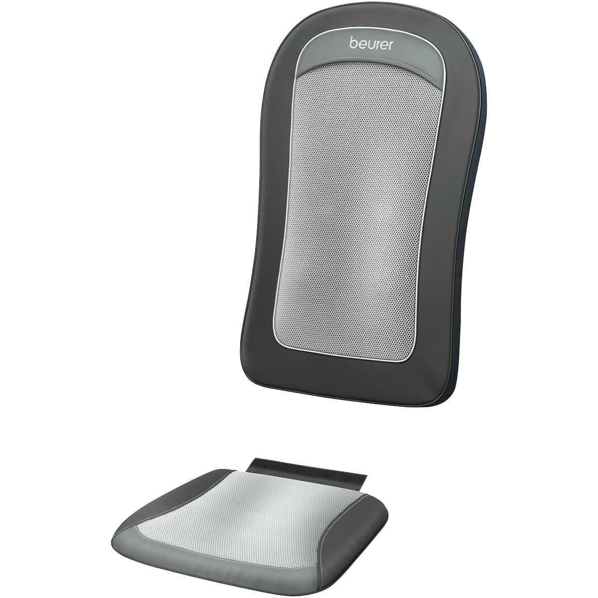Experience soothing shiatsu massage therapy in the comfort of your own home with the Beurer Shiatsu Massage Seat Cover. This versatile grey massage chair cover delivers relaxing relief to your neck shoulders upper back lower back and thighs. Equipped with four rotating massage heads that target acupressure points this seat cover allows you to customize your massage by selecting upper lower or full back zones. The surface features soft PU leather and breathable mesh for comfort. Enjoy the optional heating function and soothing LED light as you unwind. Measuring approximately 415L x 40W x 705H mm on the back and 390L x 30W x 380H mm on the seat this lightweight 2.8kg massage chair cover is designed to contour to most dining room chairs office chairs car seats and more. The removable washable velour cover makes cleaning easy. With an 18W power output and advanced 3D shiatsu massage technology the Beurer Shiatsu Massage Seat Cover provides an invigorating at-home spa experience. The manufacturer's part number for this product is MG206. Bring soothing relaxation into your daily life with the Beurer Shiatsu Massage Seat Cover.
