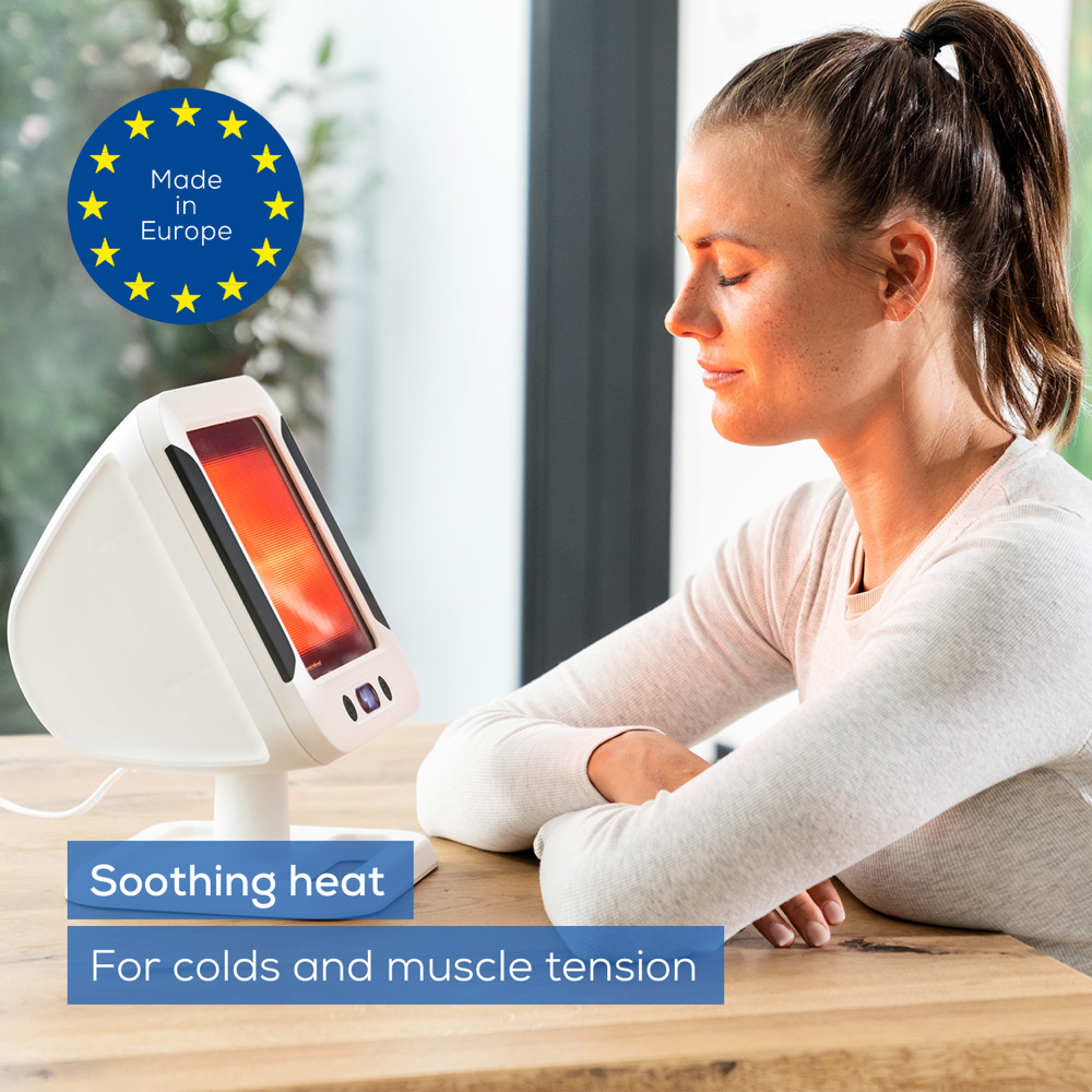 The Beurer IL60 XL infrared heat lamp is ideal for providing soothing relief for colds and muscle tension joint pain regeneration and general wellbeing. The IL60 has a continuously adjustable shade up to 40 degrees to allow for angling and adjustment toward the affected area a timer with automatic switch-off and an individually adjustable treatment time. Made in Europe with the unique SCHOTT NEXTREMA® XL glass-ceramic cover lens the IL 60 XL Infrared Lamp is suitable for particularly challenging applications. With intensive power up to 300 watts additional built in safety features include an automatic switch-off function once the set time has elapsed built-in overheating protection active ventilation and a UV blocker. Includes protective eyewear to keep eyes safe during use. 3 year warranty. Designed & Engineered in Germany.