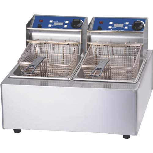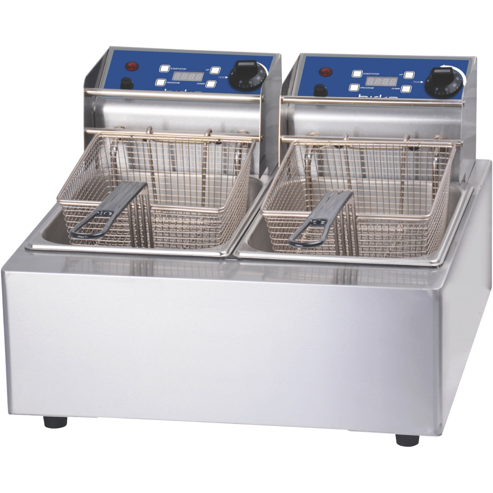 • Double fryer with 2 x 5 Litre capacity, 12.5 kg
