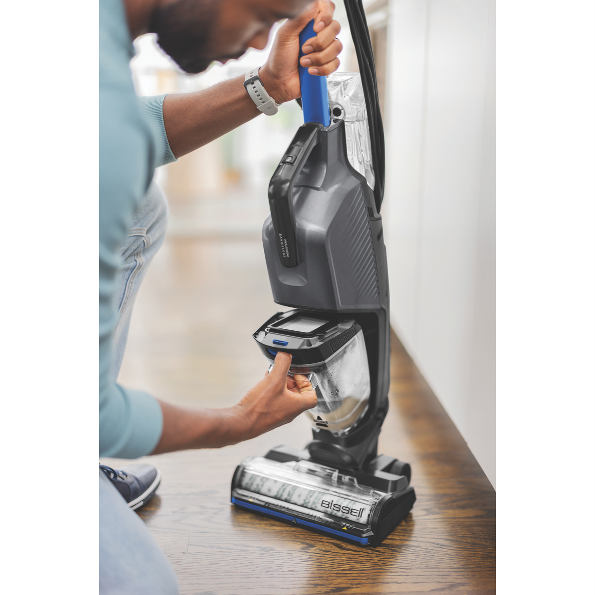 Tackle carpets and hard floors with ease using the Bissell CrossWave HydroSteam. This multi-purpose cleaner features an innovative DualBrush Roll system to gently lift dirt debris and pet hair from carpets and scrub away stuck-on messes from hard floors. With a generous 828ml water tank capacity and 620ml dirty water tank you can clean for longer without stopping to refill or empty. Bright LED headlights illuminate hidden dust and dirt while the 25ft power cord provides extended cleaning reach. Self-cleaning cycle automatically removes built-up residue from brushes. Includes specialized pet brush roll formulas for carpets and hard floors plus a 2 year warranty for peace of mind. The manufacturer's part number for this product is 3517F. Transform the way you clean with the Bissell CrossWave HydroSteam today.
