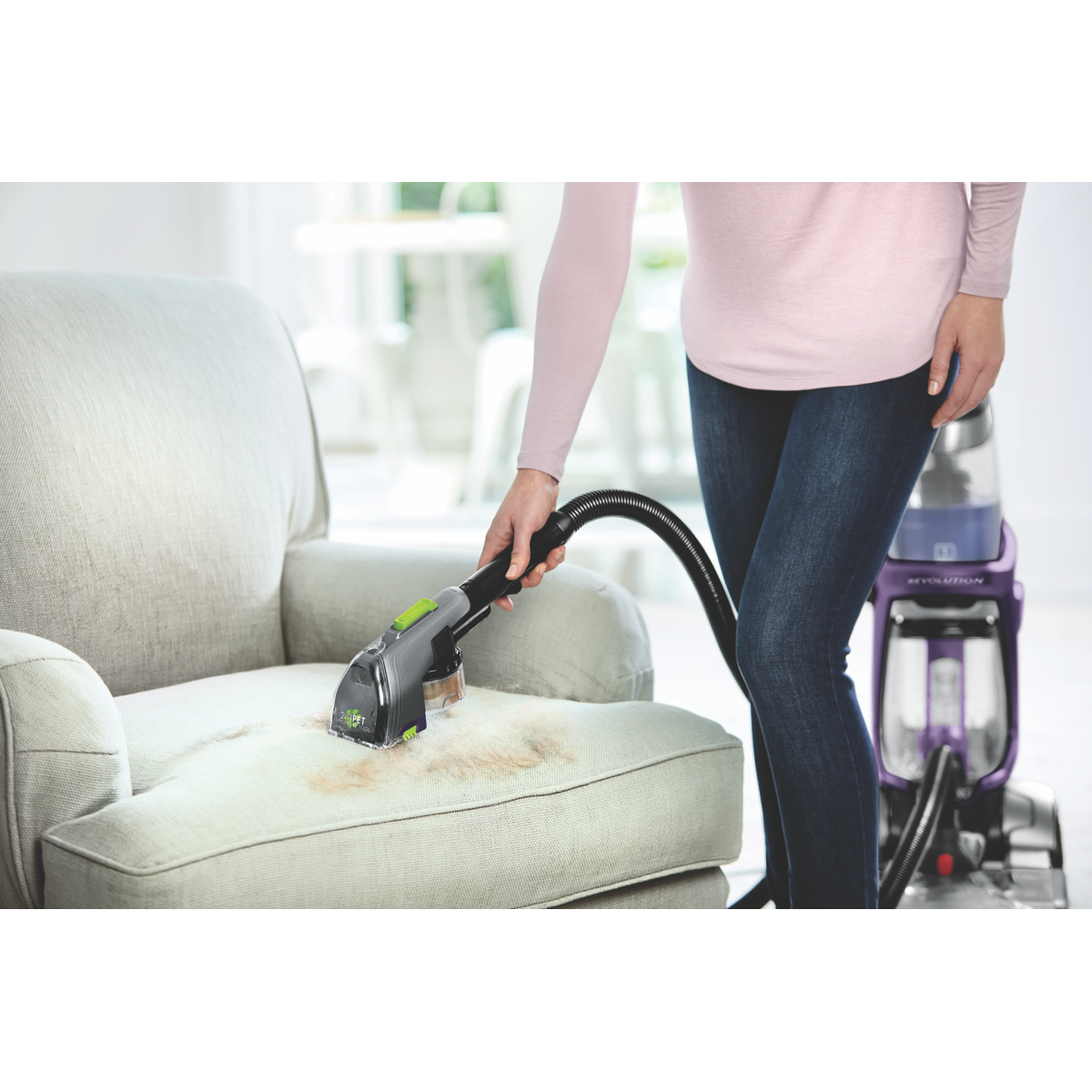 Tackle tough stains and keep your carpets looking their best with the Bissell Revolution Pet carpet cleaner. This powerful carpet cleaner is specially designed to lift stubborn pet stains and odors from carpets and upholstery. Equipped with a large 3.78L tank capacity and 7.62m power cord you can clean large areas without stopping. Weighing just 8.7kg it's easy to carry up and down stairs. It comes with useful accessories including a 2-in-1 Pet Upholstery Tool 3-in-1 Stair Cleaning Tool and a 3 Tough Stain Tool to tackle set-in stains. With two years of warranty coverage you can have peace of mind this carpet cleaner is built to last. The manufacturer's part number for this product is 3631F. Give your carpets a deep clean with the Bissell Revolution Pet today.