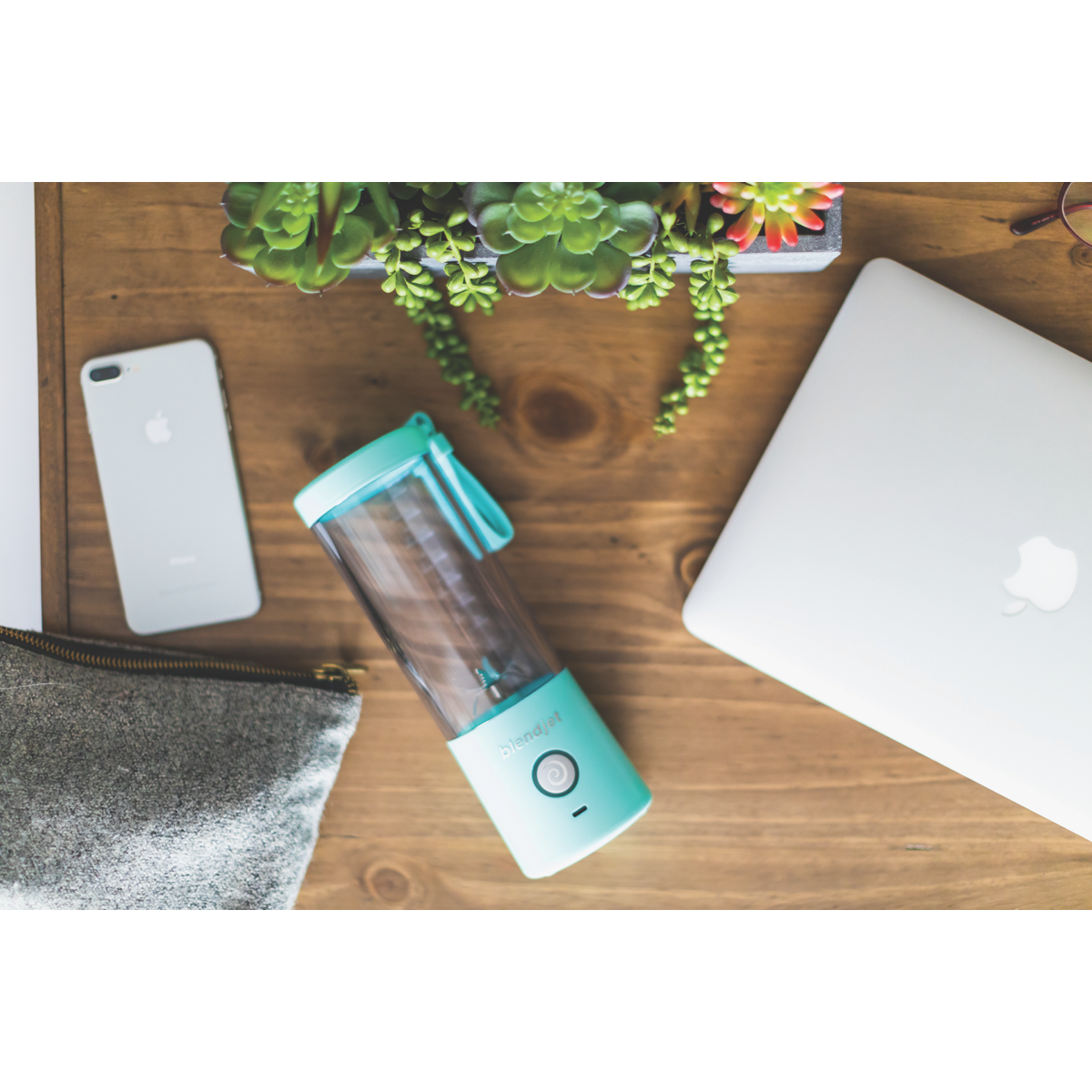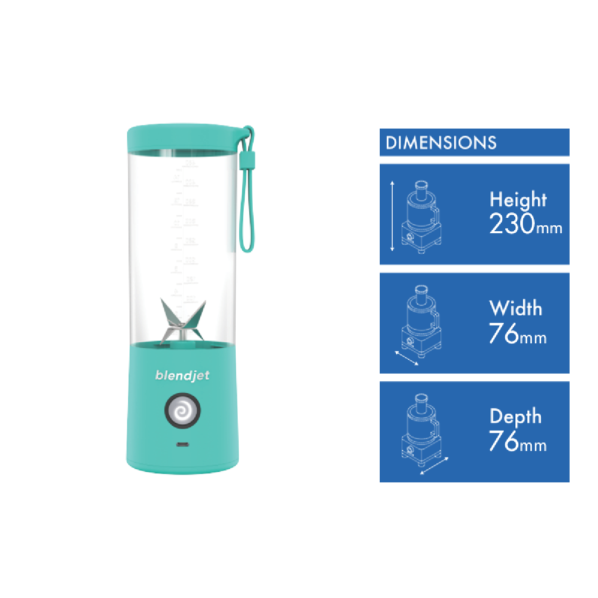 Blend and go anywhere with the BlendJet 2 Portable Blender in mint. This compact blender features a 475ml capacity and a 6-point stainless steel blade that spins up to 275 times per second powered by a 15+ blend per charge rechargeable battery. The water-resistant USB-C port enables quick charging between uses. With a safety lock and 4000 mAh battery you can blend smoothies protein shakes dressings and more in seconds. The slim 76mm width and 230mm height means this portable blender easily fits in bags to blend on the move. Vivid mint color and sleek design provide a stylish look. Create nutritious drinks and meals in seconds with the BlendJet. The manufacturer's part number for this product is 250256. Check out the BlendJet 2 today for portable blending power.