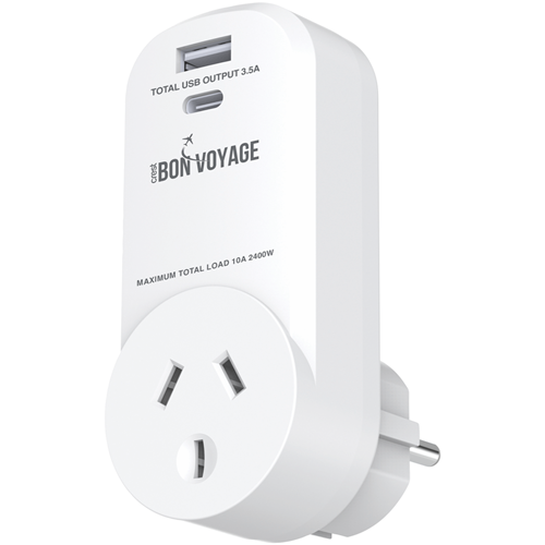 Travel with ease and stay charged on the go with the Bon Voyage Travel Adaptor AU to EU. This versatile power adaptor features dual USB ports to keep your devices powered up while away from home. With the ability to convert between Australian and European outlets this travel-friendly adaptor provides flexible charging options for phones tablets cameras and more. The compact and lightweight design easily fits into luggage making it the perfect travel companion. Stay connected and travel worry-free with the reliable Bon Voyage Adaptor. Whether you're sightseeing in Rome or exploring the streets of Paris this adaptor lets you charge on-the-go so you'll never miss capturing those memorable moments. The manufacturer's part number for this product is PWW14016. Be sure to pack the Bon Voyage Travel Adaptor AU to EU for your next overseas adventure.