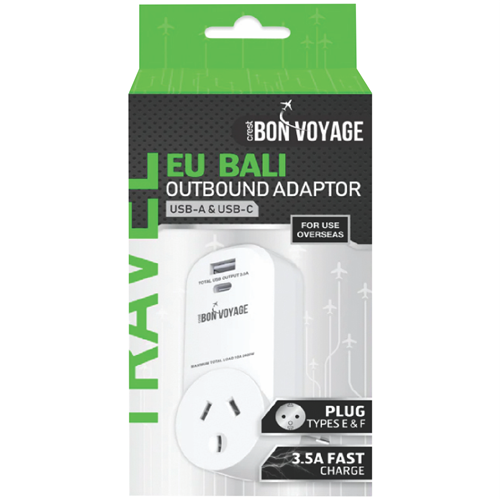 Bon Voyage Travel Adaptor AU to EU (2 USB Ports)