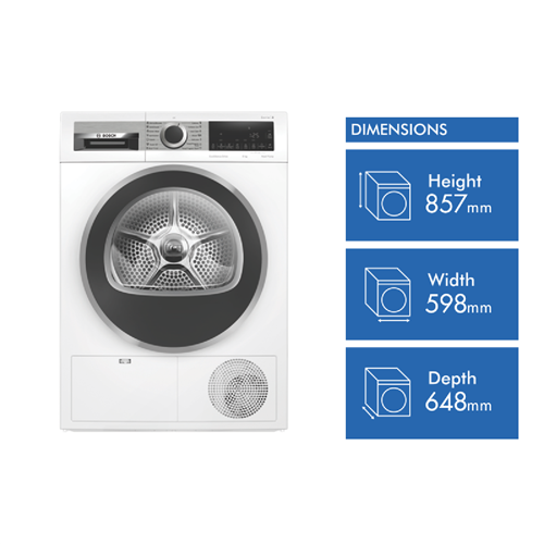 ActiveAir Technology reuses existing heat efficiently during the entire drying process. Auto Dry: automatically dries to the exact level of dryness you select. Half load option: optimises the drying settings (load and duration) for small loads. AntiVibration Design: extremely stable and especially quiet. Sensitive Drying System: for gentle drying without wrinkles.