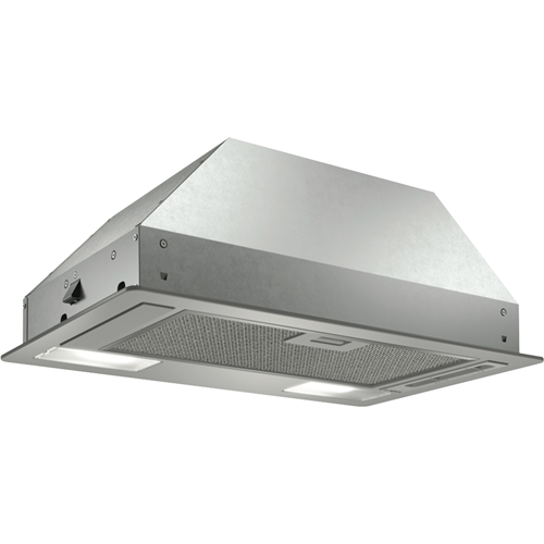 Add a touch of modern style to your kitchen with the Bosch 53cm Integrated Rangehood. This undermount rangehood boasts a sleek stainless steel and grey fascia that will complement contemporary decor. With an impressive 420 cubic metres per hour extraction capacity and 3 fan speeds this rangehood will efficiently remove steam grease and odours while you cook. The two LED lights illuminate your cooktop for optimal visibility. Features like the sliding switch controls one-way flap and integrated motor make operation seamless. You'll appreciate the quiet 68 decibel noise level that won't disrupt conversations. Ducted or recirculated options provide flexible installation.With a width of 534mm height of 208mm and depth of 300mm this rangehood fits neatly under your cabinetry. The durable stainless steel finish is easy to wipe clean and will stand the test of time. It comes with a 2 year manufacturer's warranty for peace of mind.Add modern style and efficient ventilation to your kitchen with the Bosch 53cm Integrated Rangehood. This rangehood will keep your kitchen fresh while complementing your decor. The manufacturer's part number for this product is DLN54AA70A.