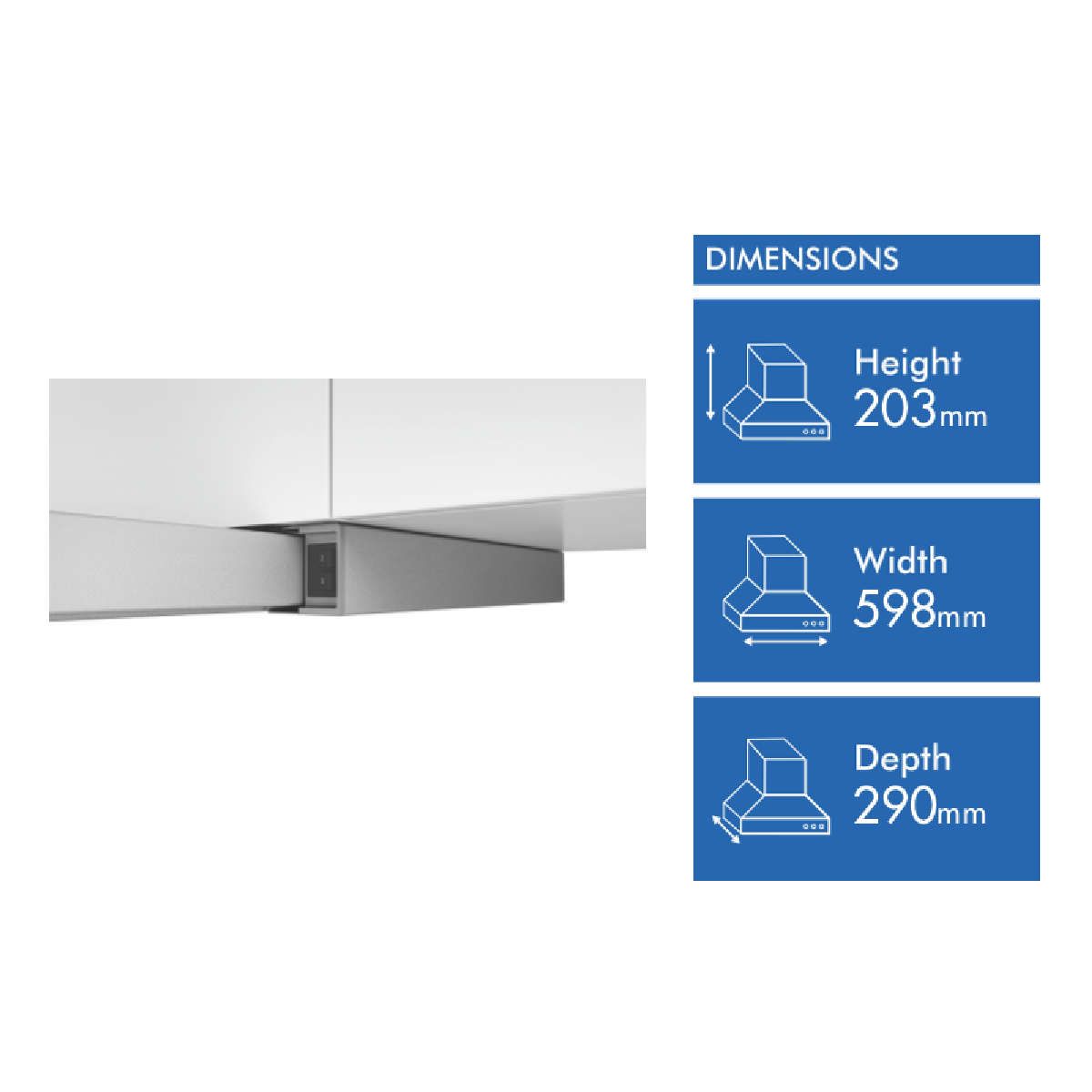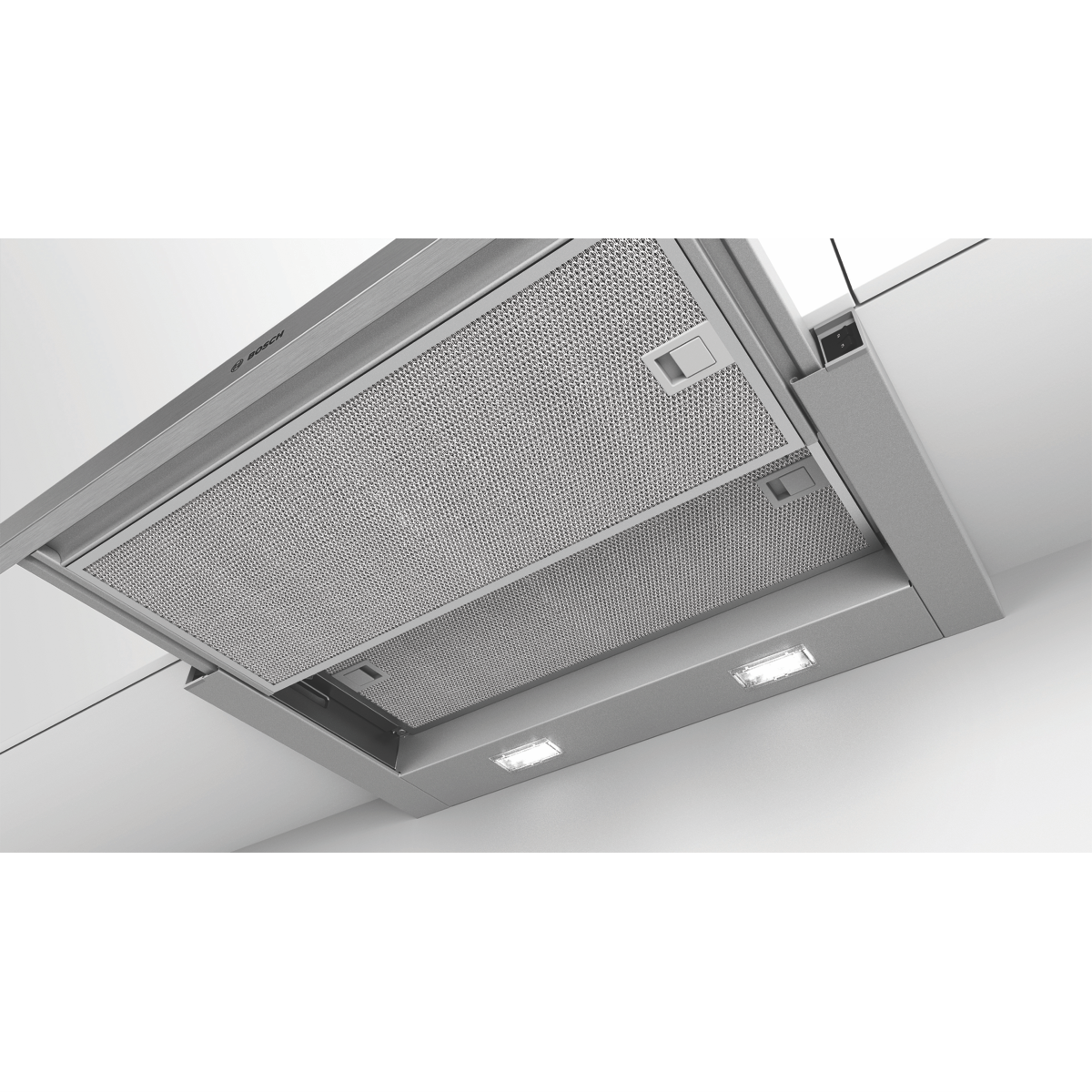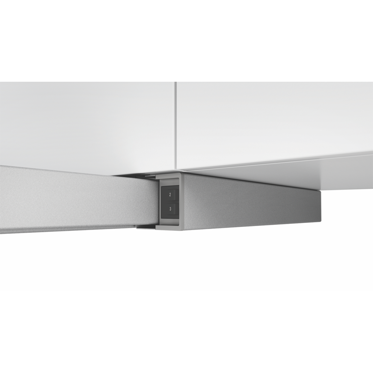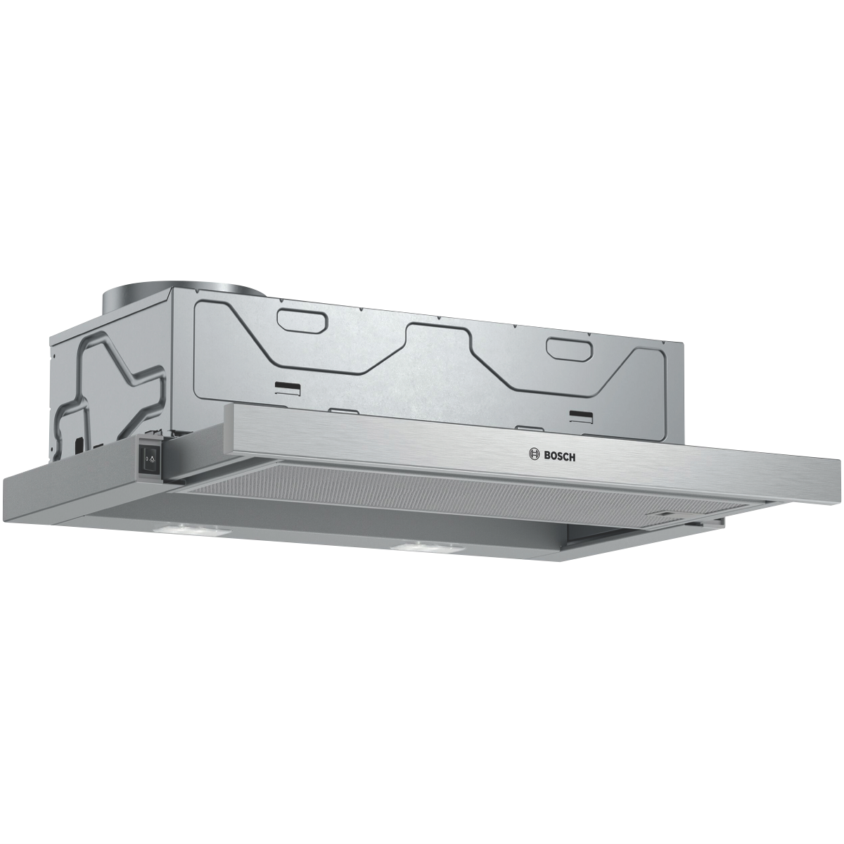Breathe easy while cooking up a storm with the Bosch 60cm Series 2 Slideout Rangehood. This sleek silver metallic hood not only looks great in your kitchen but it also boasts powerful 389 cubic meters per hour extraction to swiftly eliminate cooking odors smoke and steam. The ultra-quiet 67 to 69 decibel motor ensures you can still carry a conversation comfortably while it operates. With brilliant LED lighting and dishwashable metal grease filters you'll find keeping your Bosch rangehood sparkling clean is a breeze. Enjoy maximum flexibility with both ducted and recirculated modes available. The inclusion of three fan speeds allows you to adjust the airflow to suit whatever's cooking. Measuring 598mm in width this 60cm wide model is designed to fit above most stovetops. With a slideout rangehood you get optimal access for cleaning while enjoying a streamlined look when not in use. Bring home this superb Bosch rangehood and breathe easy while cooking up a storm for years to come. The manufacturer's part number for this product is DFM064W54A.