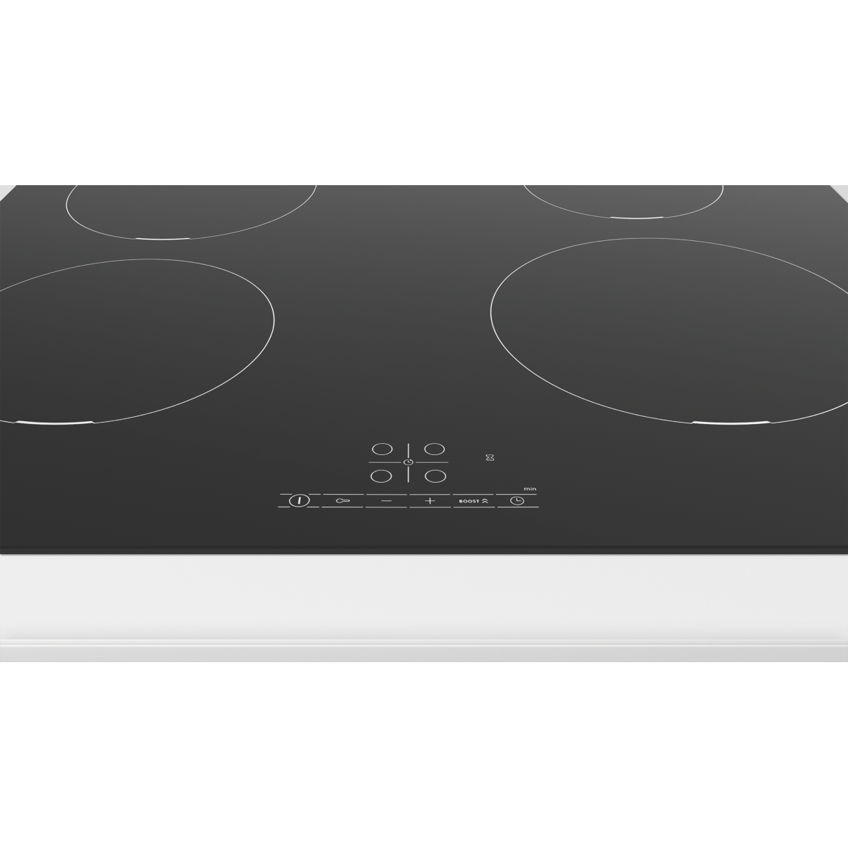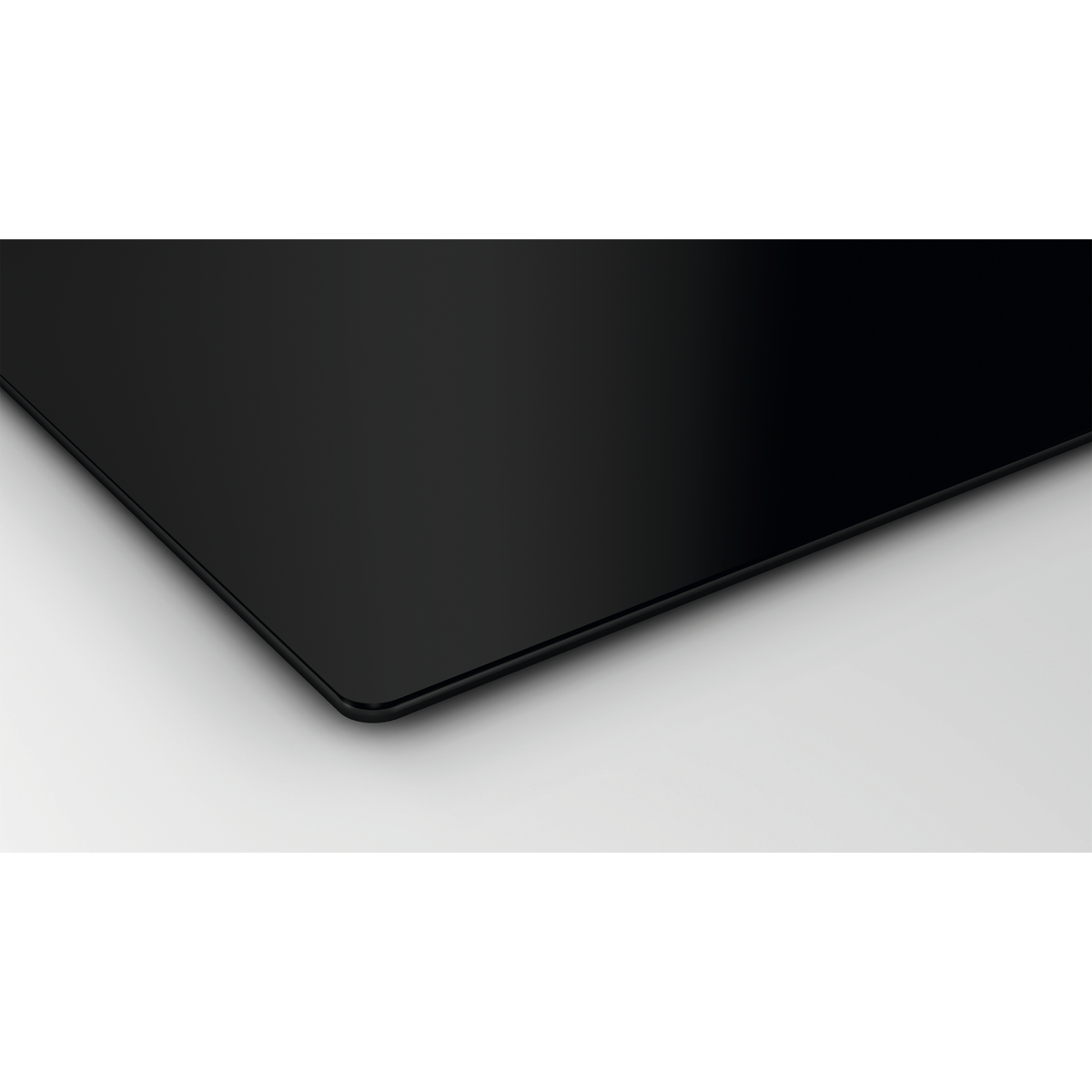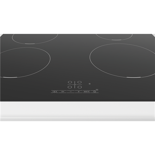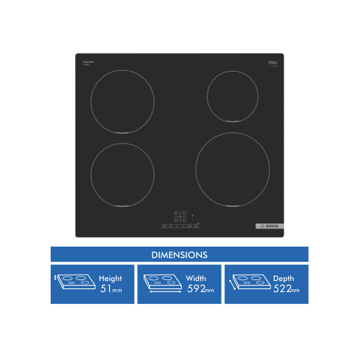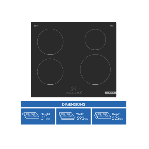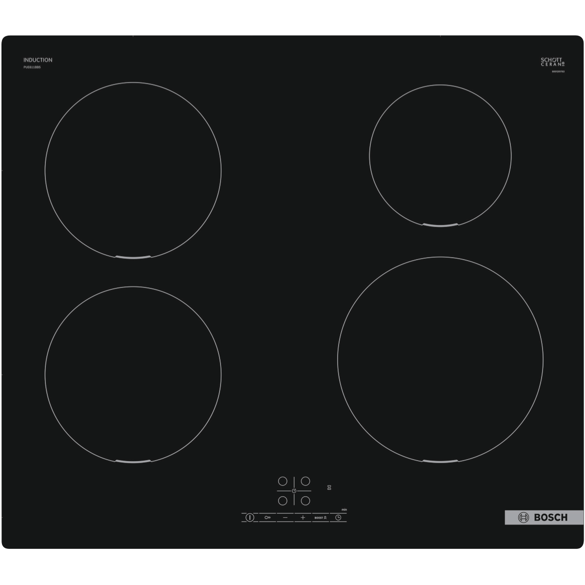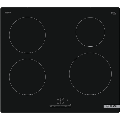 Upgrade your kitchen with the sleek modern Bosch 60cm Series 4 Induction Cooktop. This electric cooktop features four induction cooking zones to accommodate all your culinary creations. The touch controls provide 17 power levels so you can fine-tune heat with precision while QuickStart detects pots instantly. Enjoy features like PowerBoost to rapidly boil water along with a timer and safety lock for added convenience. With a black glass surface and stainless steel trim this cooktop looks as good as it performs. Induction technology allows for faster heating and improved energy efficiency compared to traditional electric cooktops. The smooth glass surface makes cleaning effortless. Prepare restaurant-quality meals at home with this versatile Bosch cooktop. Backed by a 2 year warranty this cooktop provides long-lasting performance. The manufacturer's part number for this product is PUE611BB5E. Discover the modern way to cook with this advanced Bosch induction cooktop.