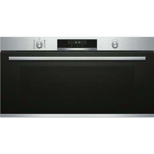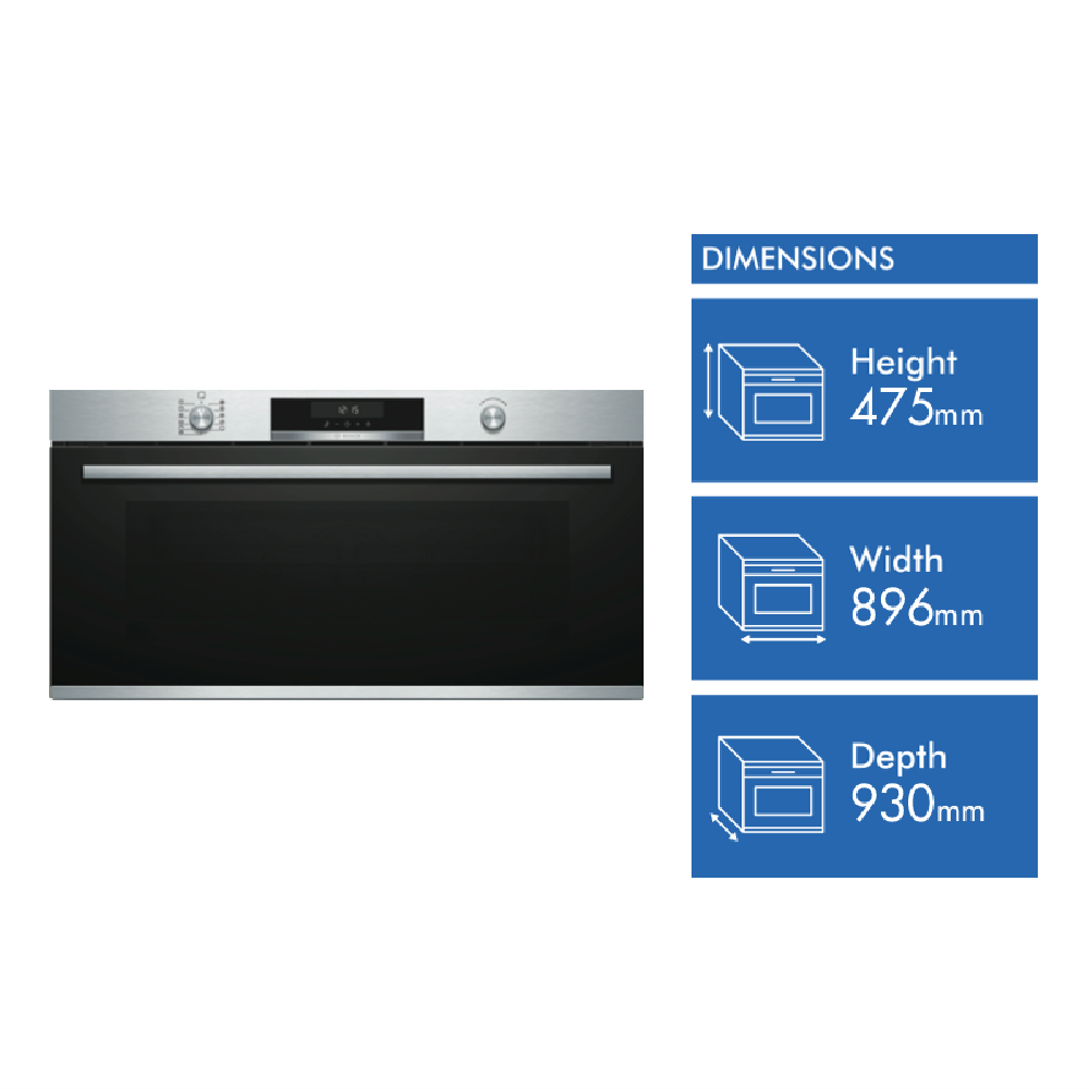 Bring restaurant-quality cooking into your home kitchen with the Bosch 90cm Built-in Pyrolytic Oven Series 6. This stainless steel beauty packs 10 versatile oven functions like Hot Air Top/Bottom Heating Full Width Grill and more into its spacious 85L interior giving you the tools to prepare everything from crispy pizzas to juicy roasts with ease. The addition of Bosch's innovative Pyrolytic cleaning takes the effort out of oven maintenance. Simply activate it after cooking is done and this oven will use extremely high temperatures to reduce food residue to ash that's easily wiped away after. With features like a rapid heat-up function retractable control knobs and a built-in timer operation is smooth and convenient. The four rack levels maximize your cooking space so you can prepare multiple dishes at once. It's all encased in a durable stainless steel housing built to withstand years of regular use. This oven comes with a comprehensive set of accessories too including baking trays grids and more. Backed by Bosch's 2 year warranty this is a long-lasting oven designed to be the centerpiece of your kitchen. The manufacturer's part number for this product is VBC578FS0. Bring out your inner chef with the Bosch 90cm Pyrolytic Oven today.
