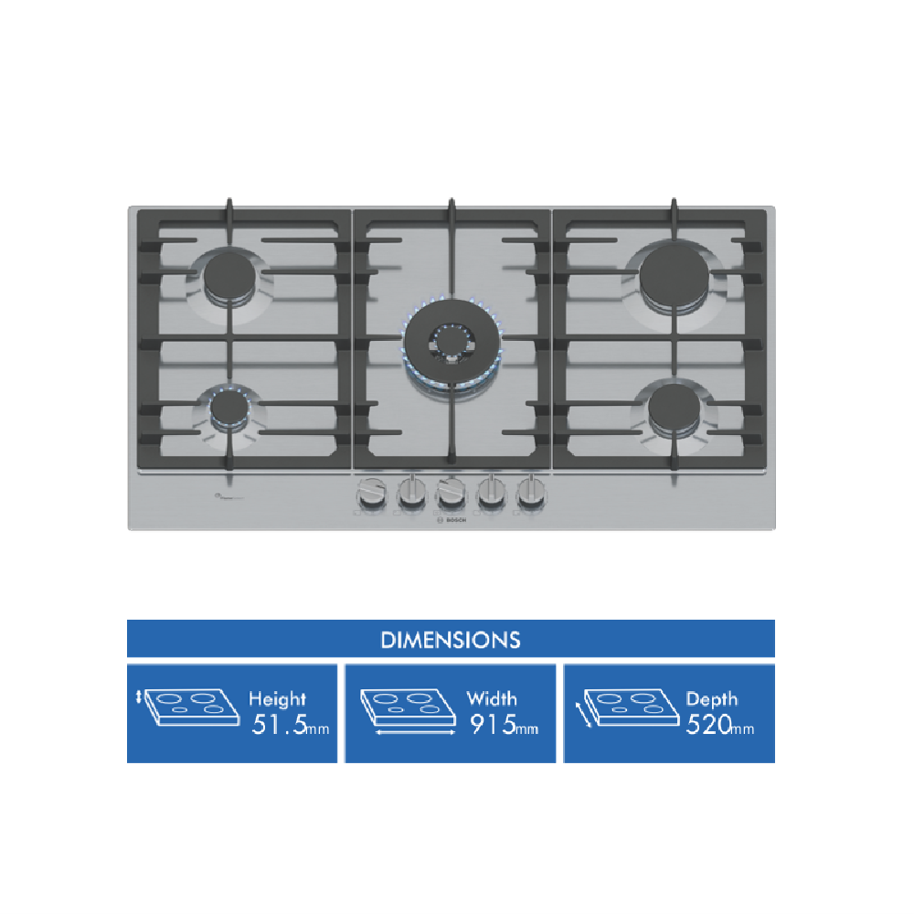 Bosch Series 6 90cm Gas Cooktop - Stainless Steel