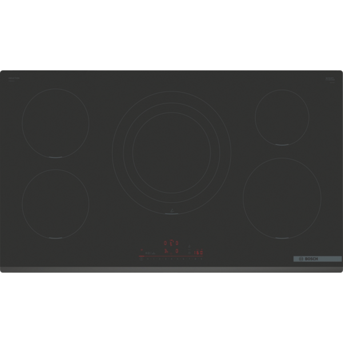 Step up your kitchen with the power and precision of the Bosch Series 6 90cm Induction Cooktop. This sleek black glass cooktop boasts 5 induction cooking zones to accommodate all your cooking needs. The touch controls with 17 power levels allow you to fine-tune heat with ease. Features like PowerBoost ReStart QuickStart and Pause give you complete command over your cooking. With automatic pan recognition this cooktop intelligently detects your cookware. The switch-off timer count-down timer and child lock provide added safety and convenience. At 918mm wide this spacious cooktop has room to cook multiple dishes at once. The durable glass surface simply wipes clean after use. With intelligent DirectSelect and automatic safety switch off Bosch brings the latest induction technology to your kitchen. Backed by Bosch's 2 year warranty this cooktop delivers advanced features you can count on for quicker easier and smarter cooking every day. The manufacturer's part number for this product is PIV931HC1E. Bring home the Bosch Series 6 90cm Induction Cooktop for high-performance cooking.