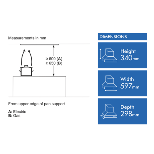 • 60 Centimetre ducted and recirculating with 2x 2W LED lights
